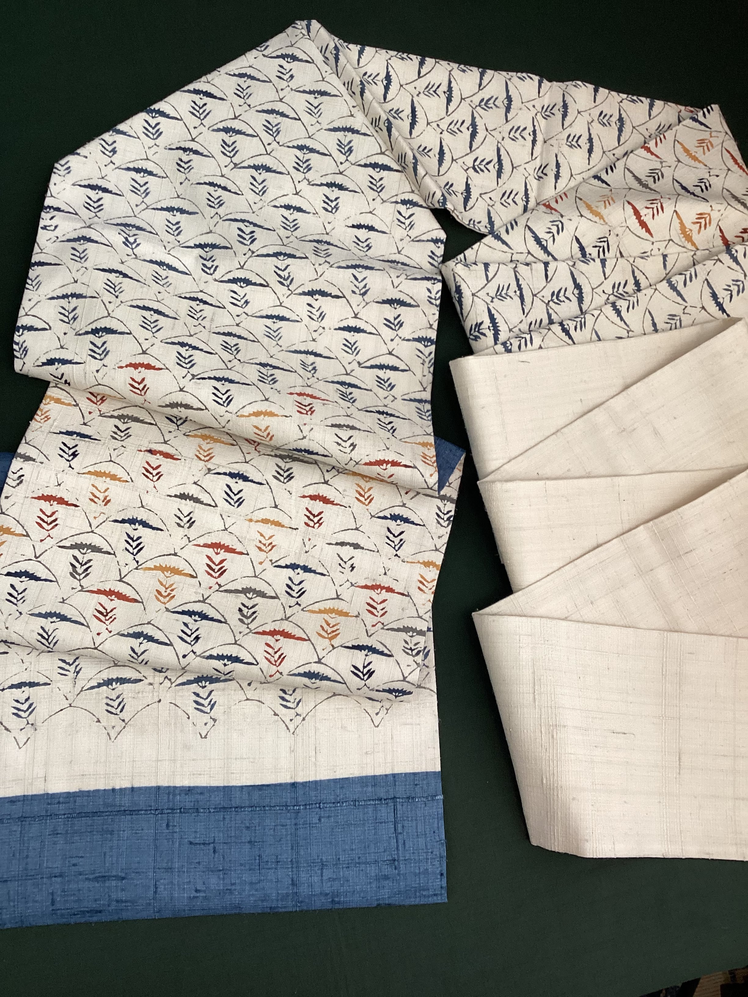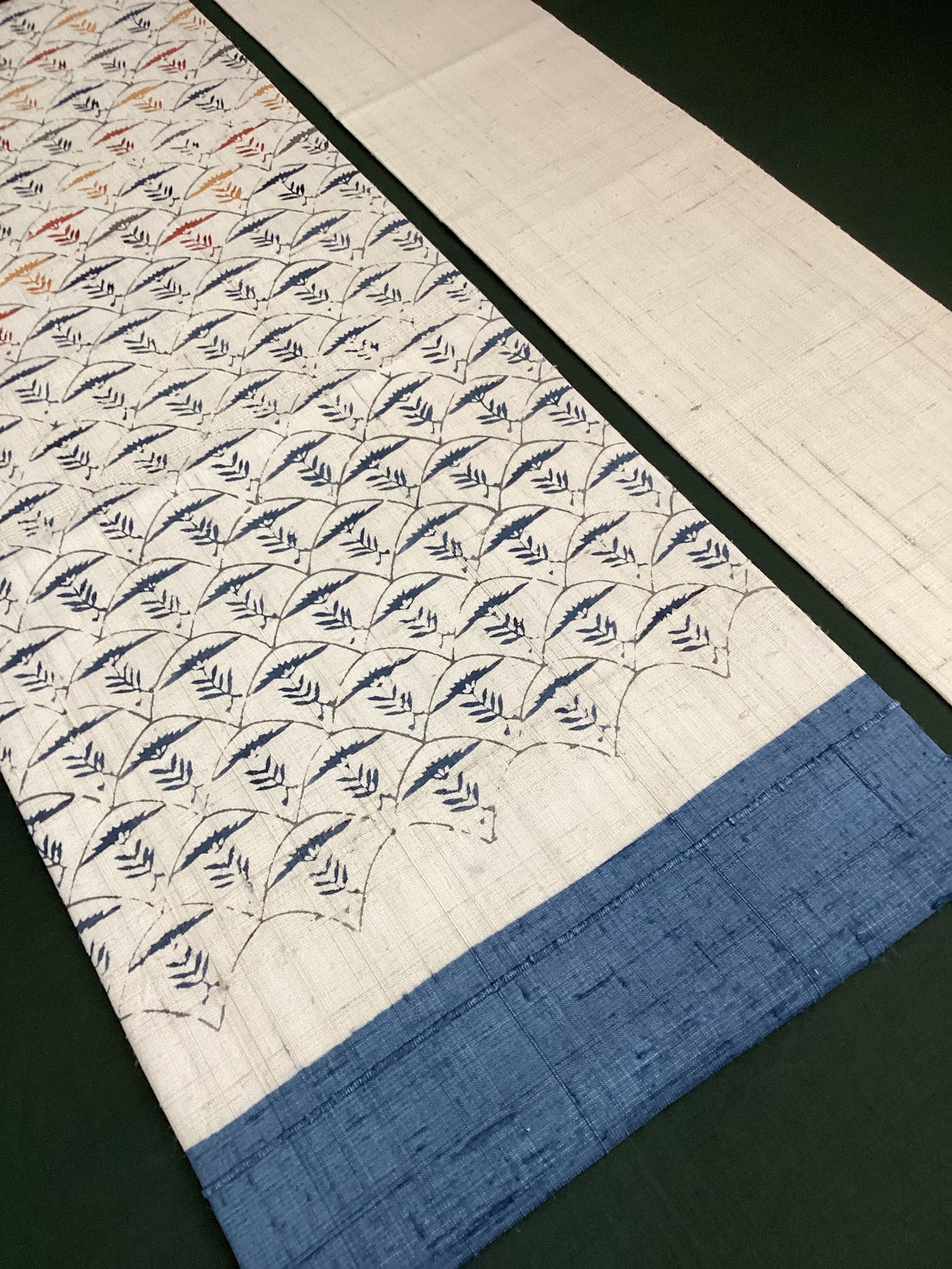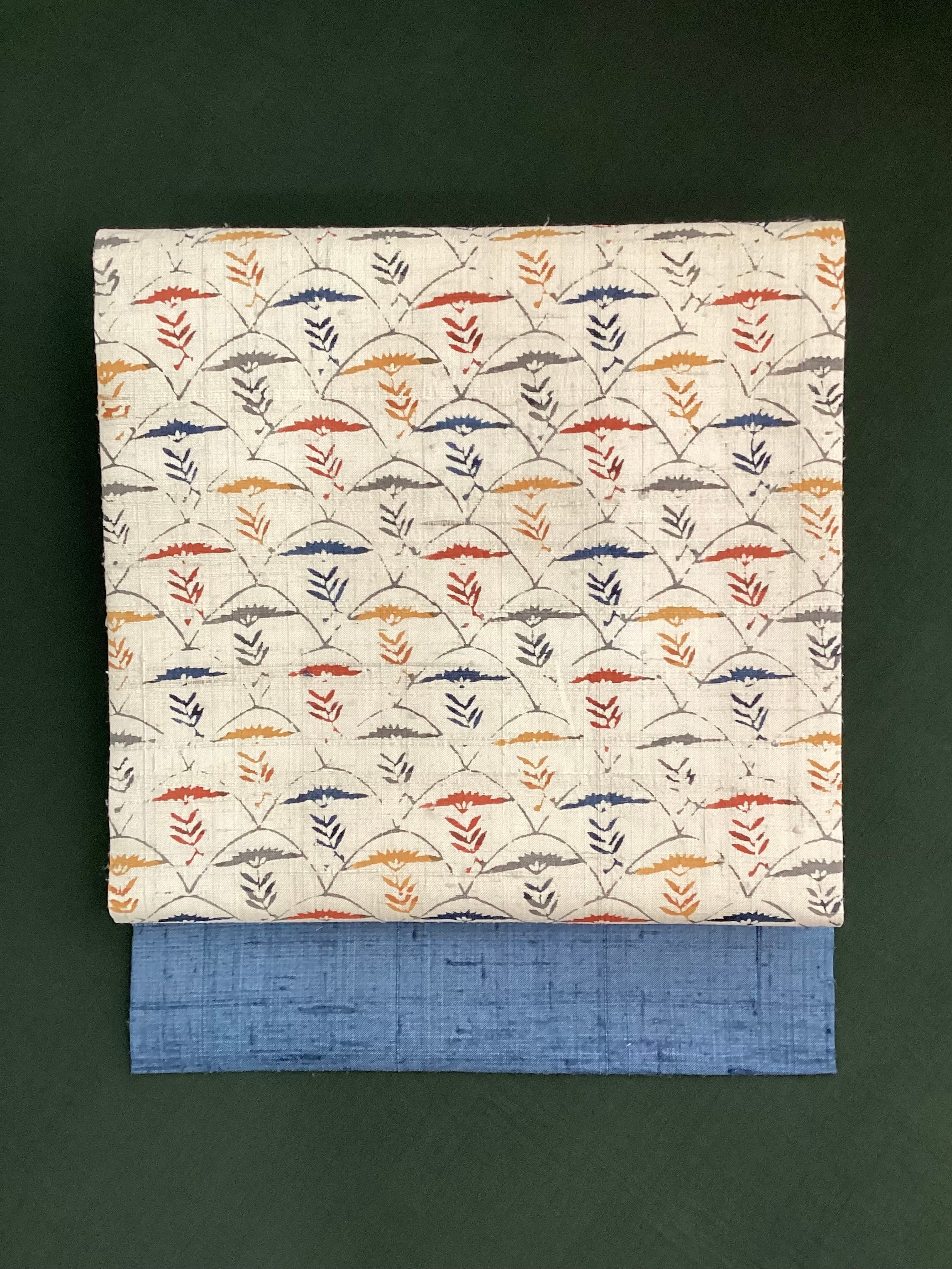 素色地青海波に草花文型染め紬なごや帯 260324-3