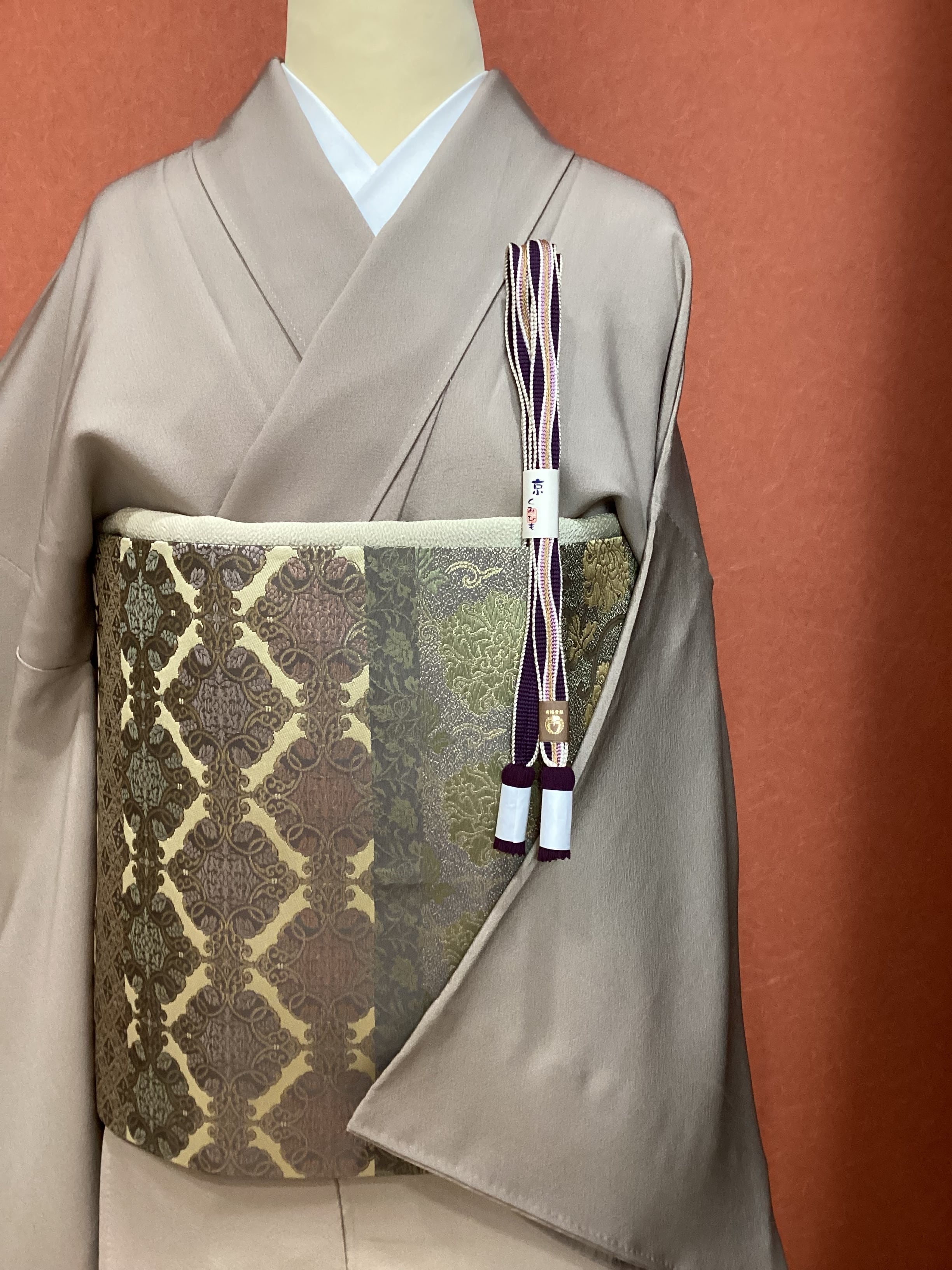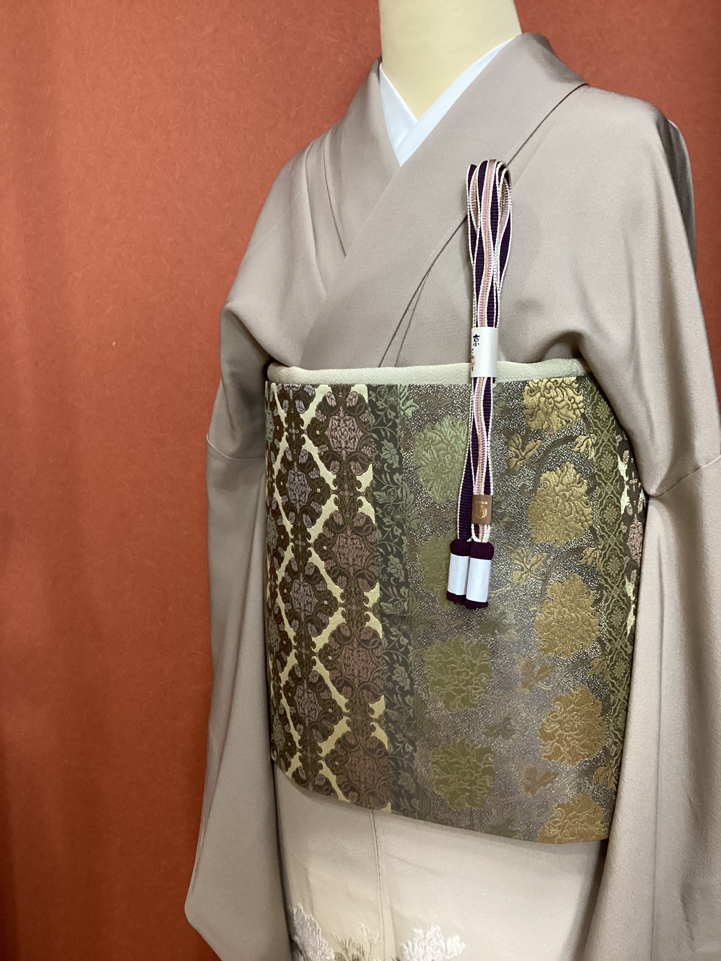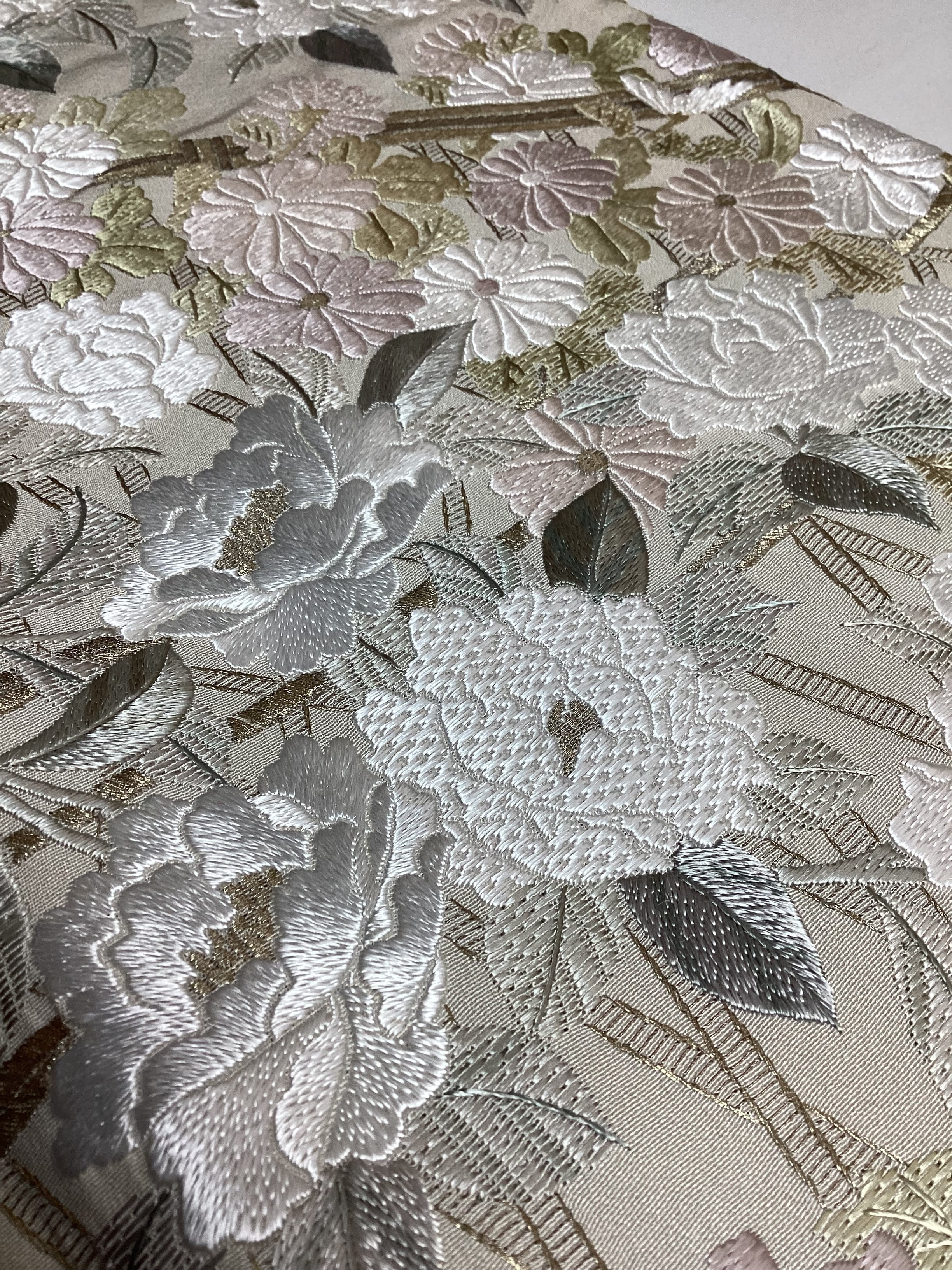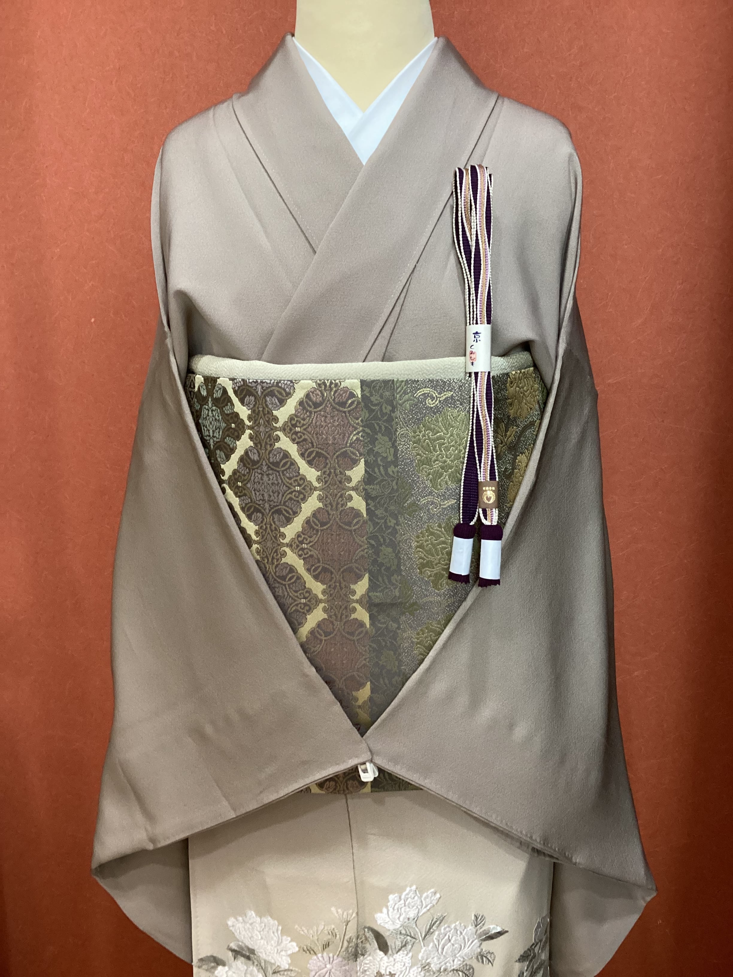 グレージュ色地垣根に四季花刺繍文一つ縫紋色留袖 260325-1