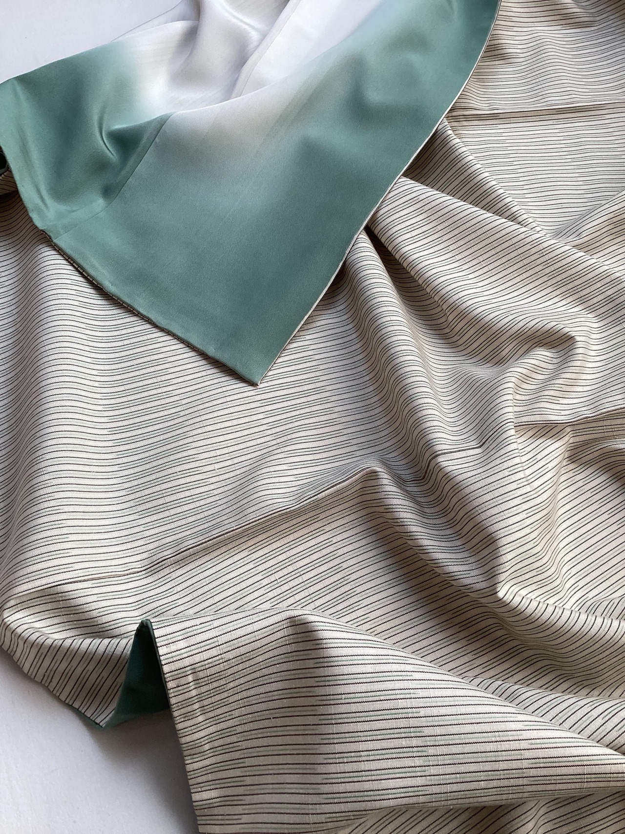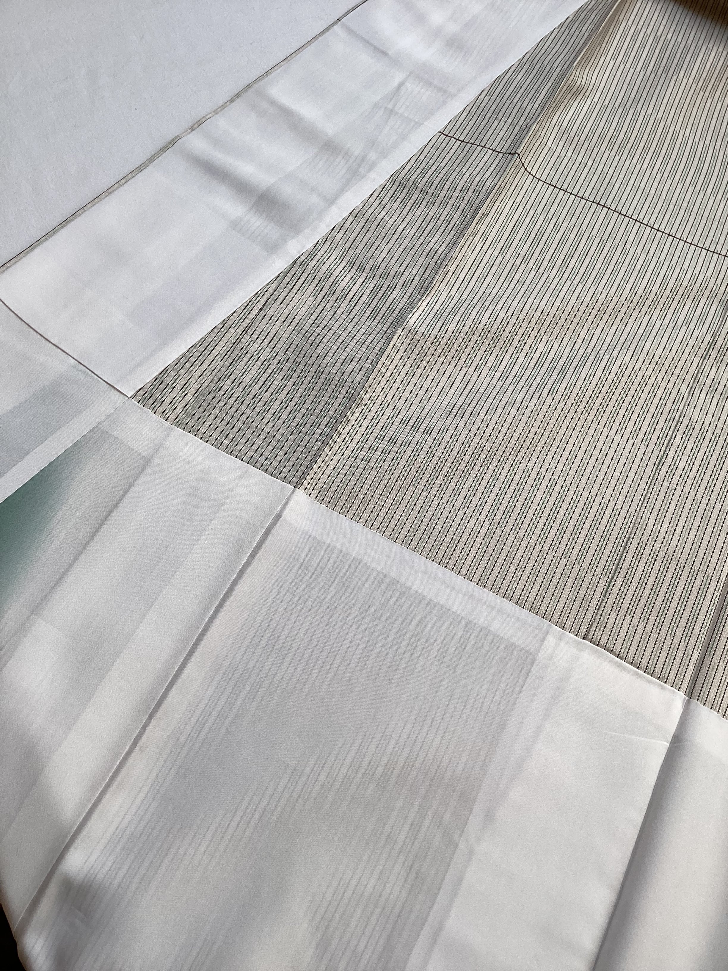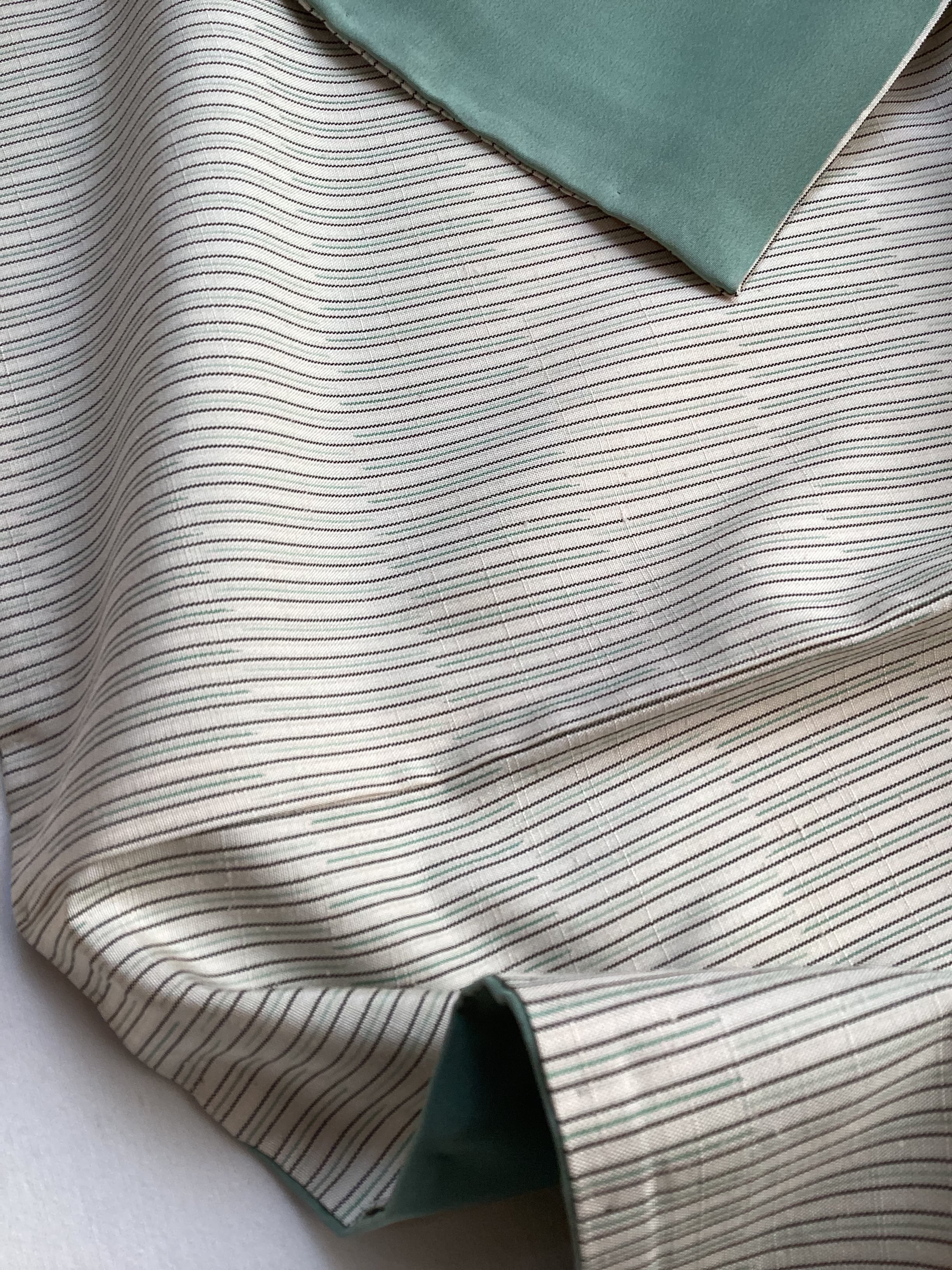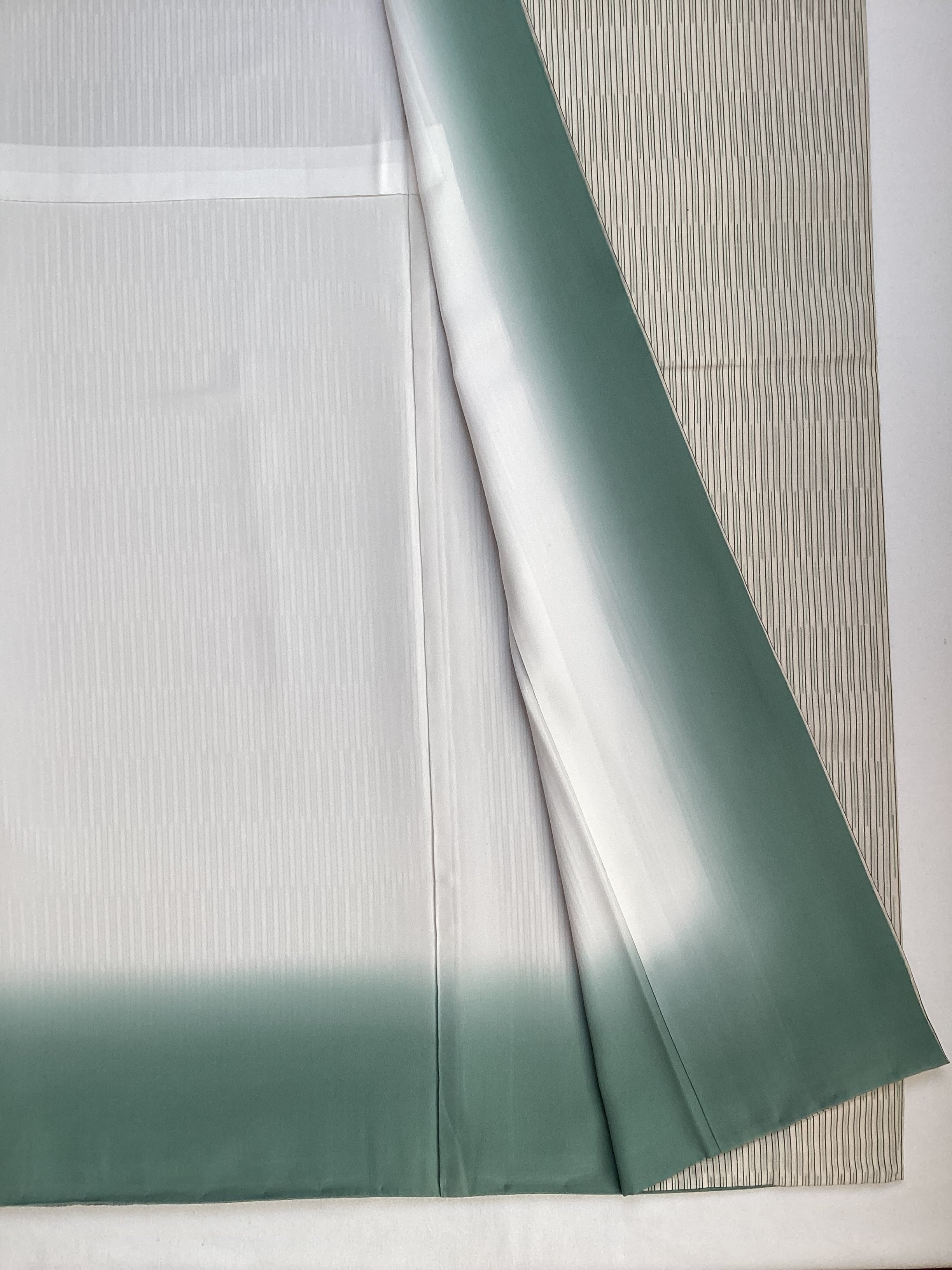 【胴抜き仕立て】生成りにミントグリーン縦縞文紬 260326-1