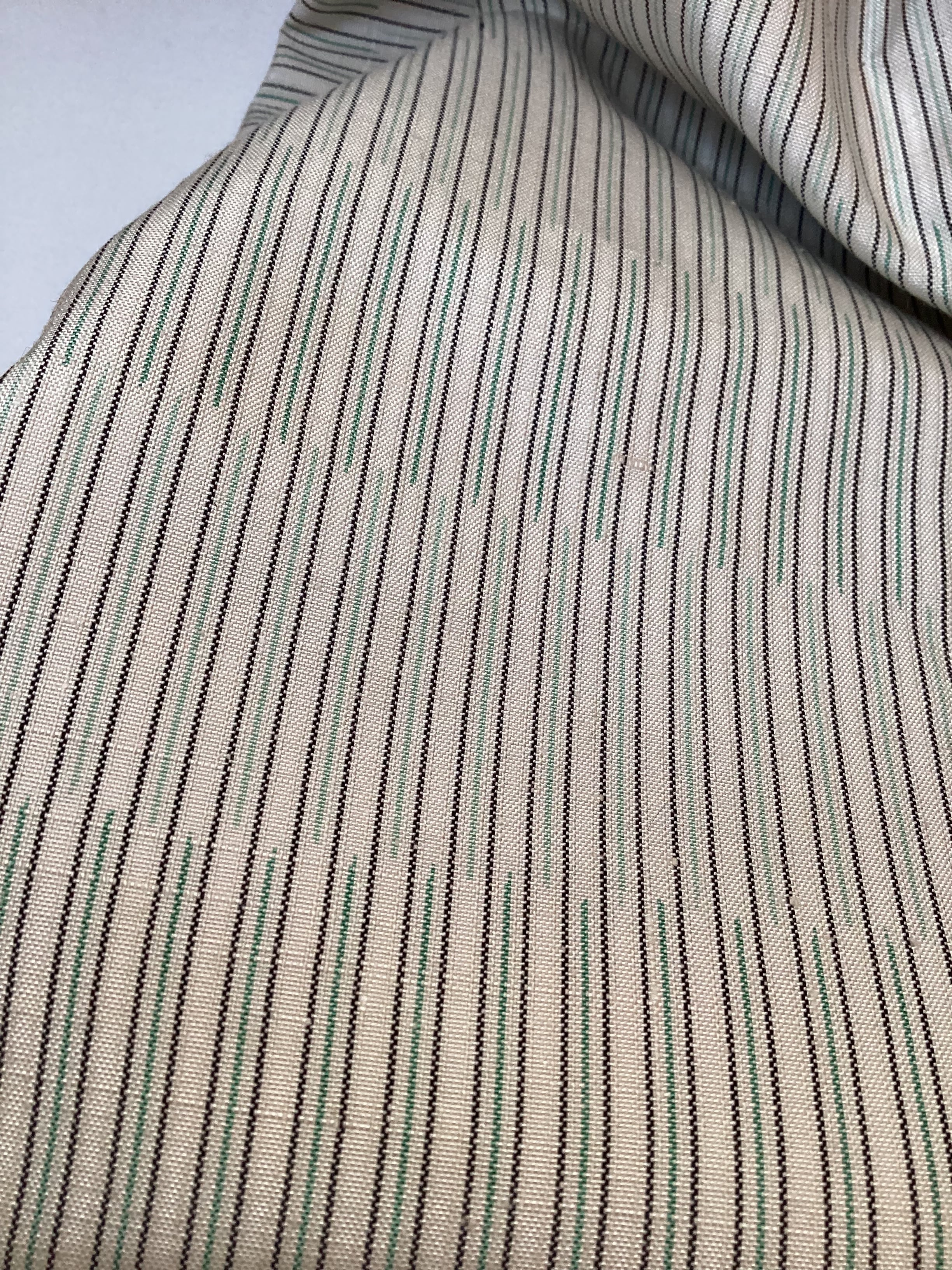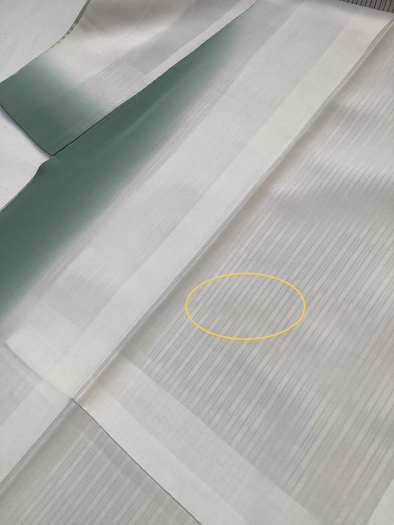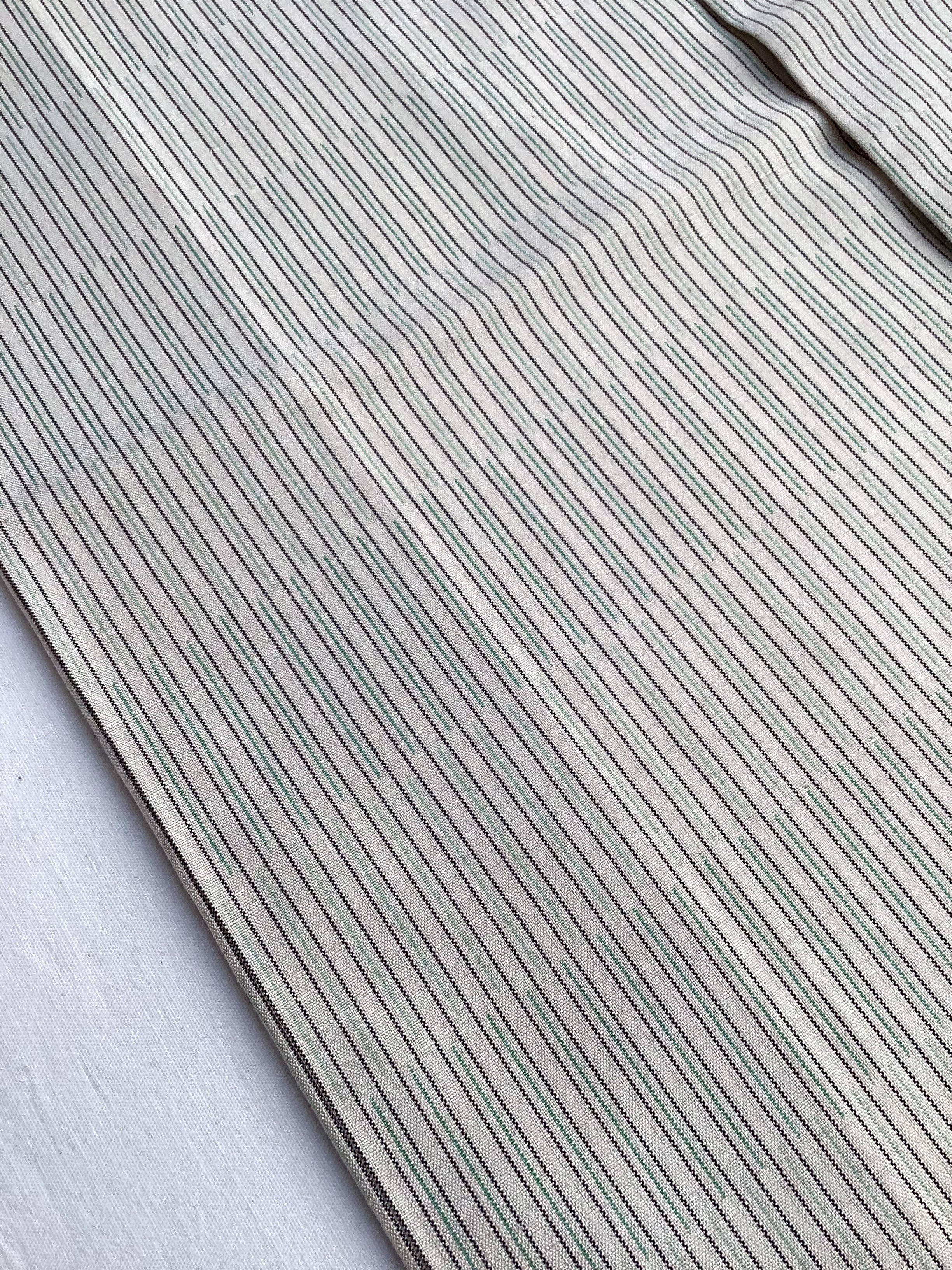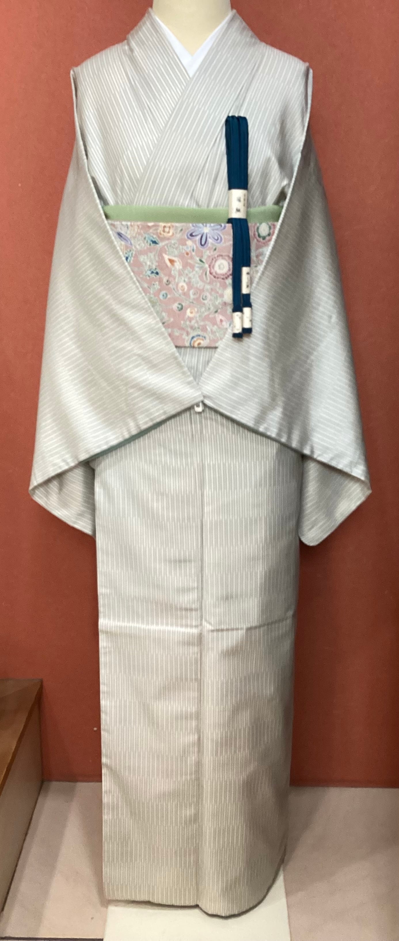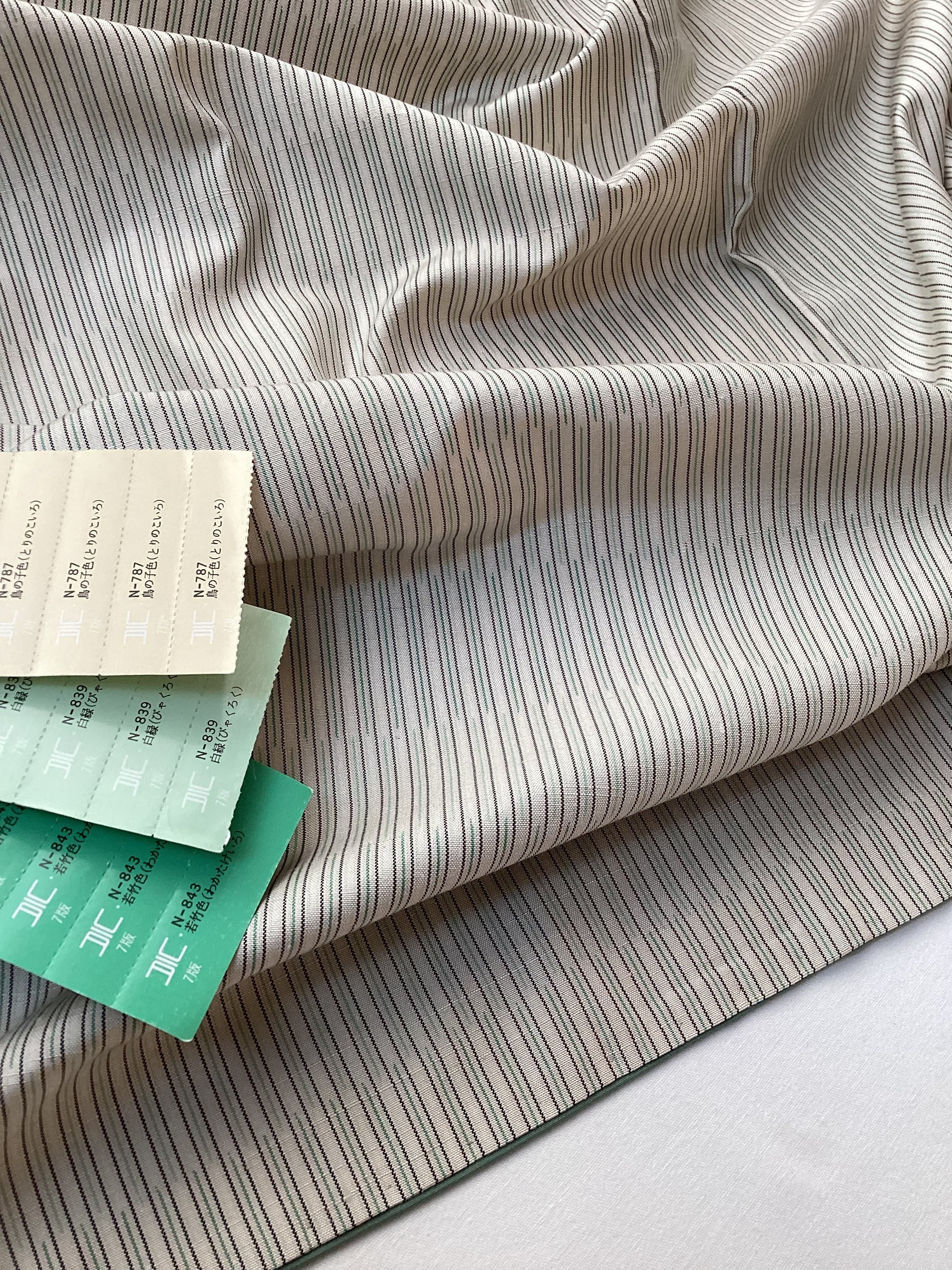 【胴抜き仕立て】生成りにミントグリーン縦縞文紬 260326-1