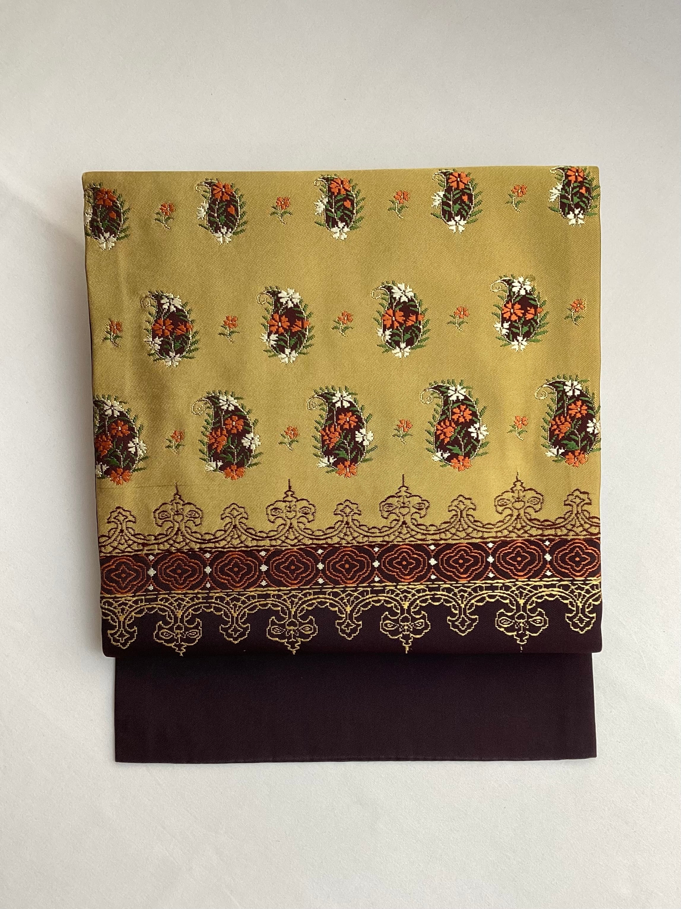 深支子色地更紗風ペイズリー草花文なごや帯 260402-2