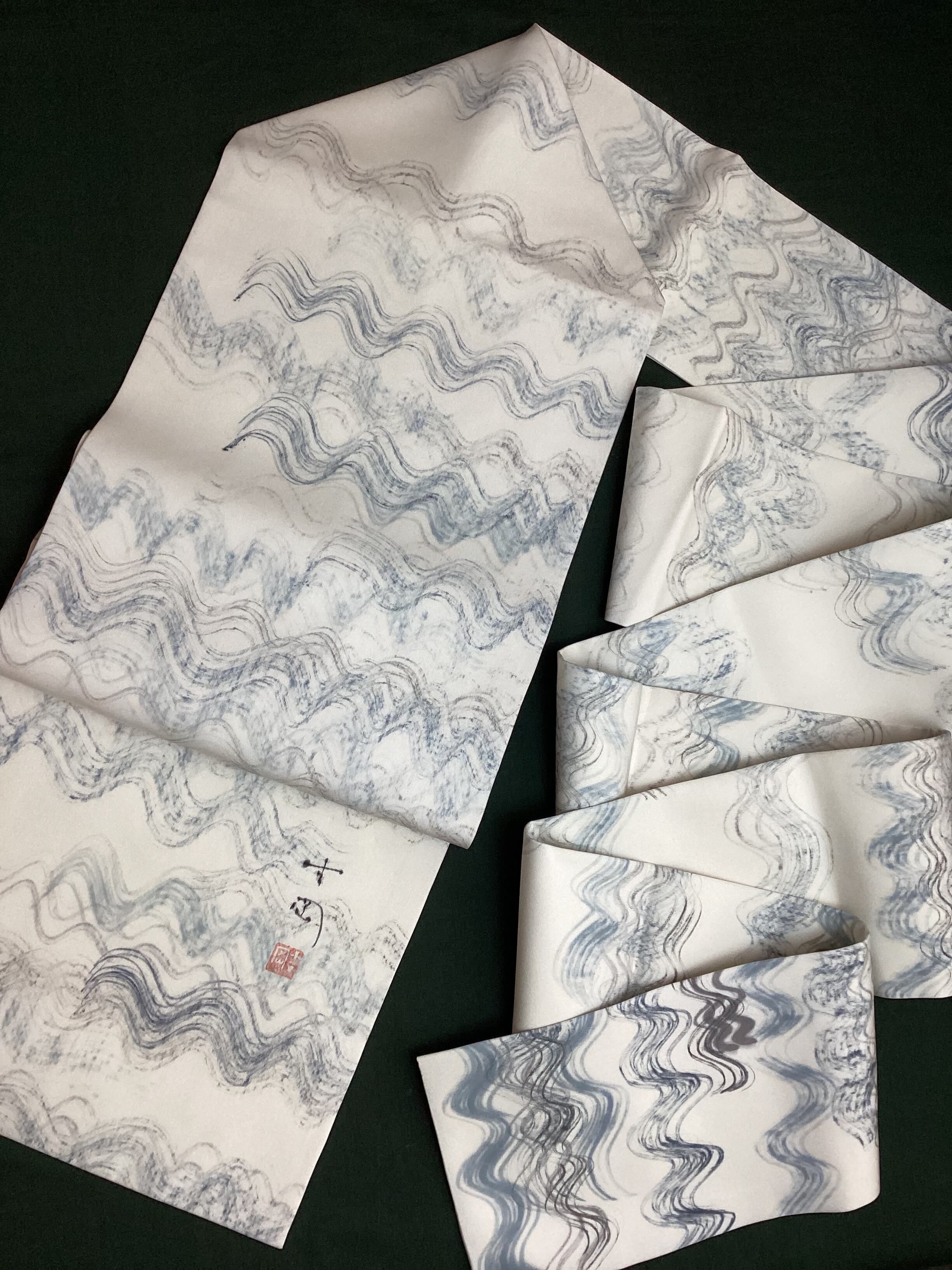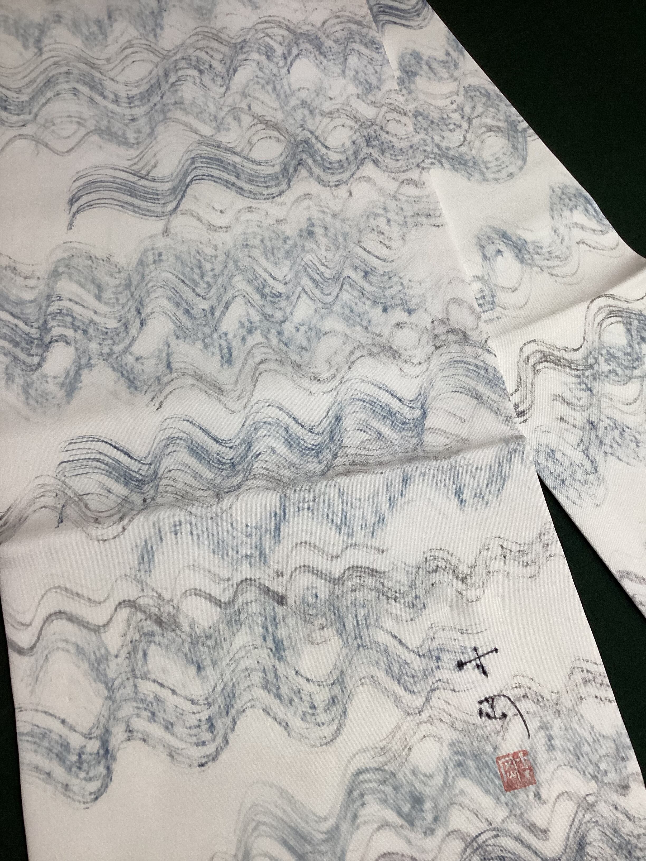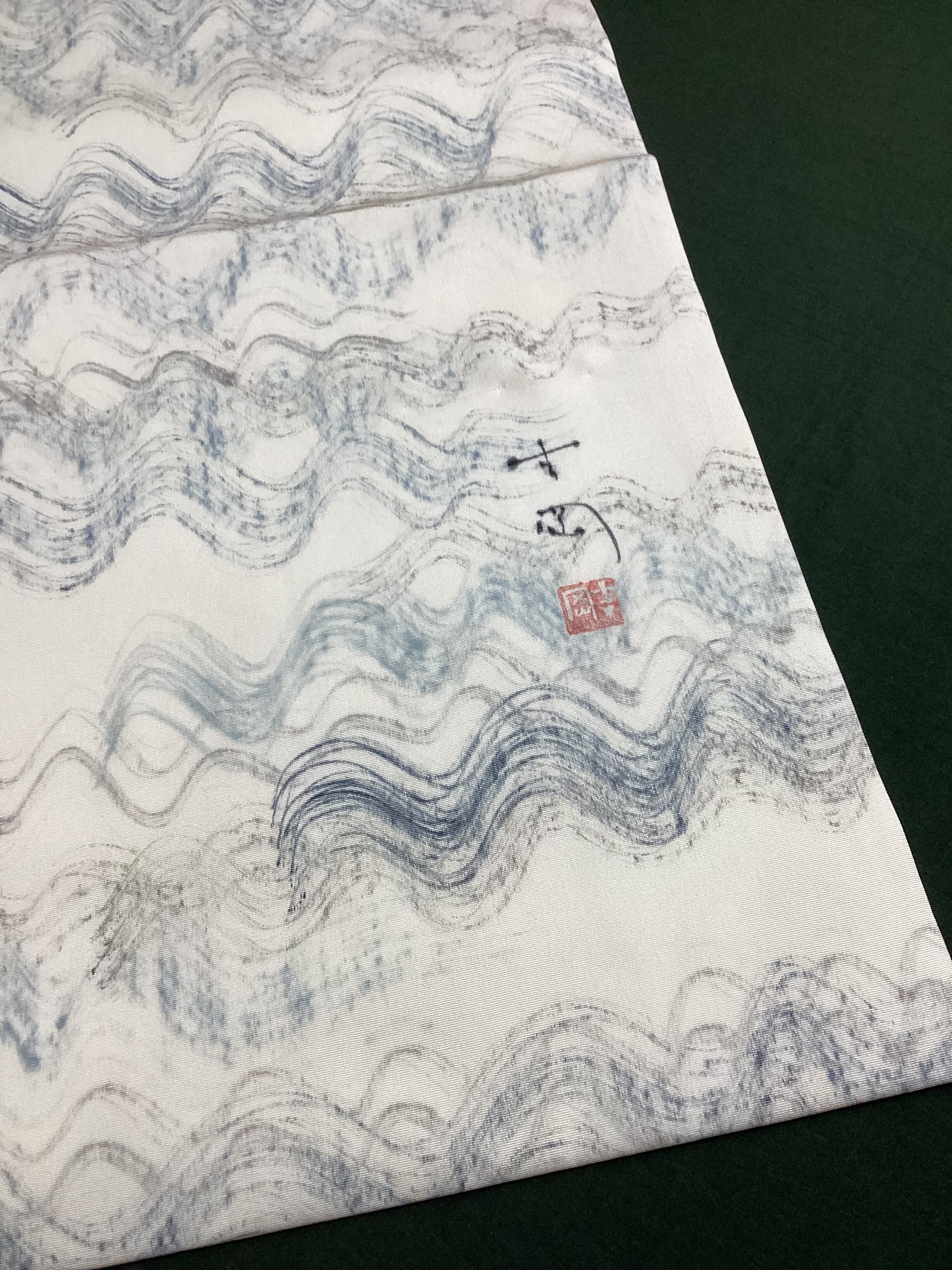 白地手描き波文【染司よしおか】塩瀬なごや帯260403-2