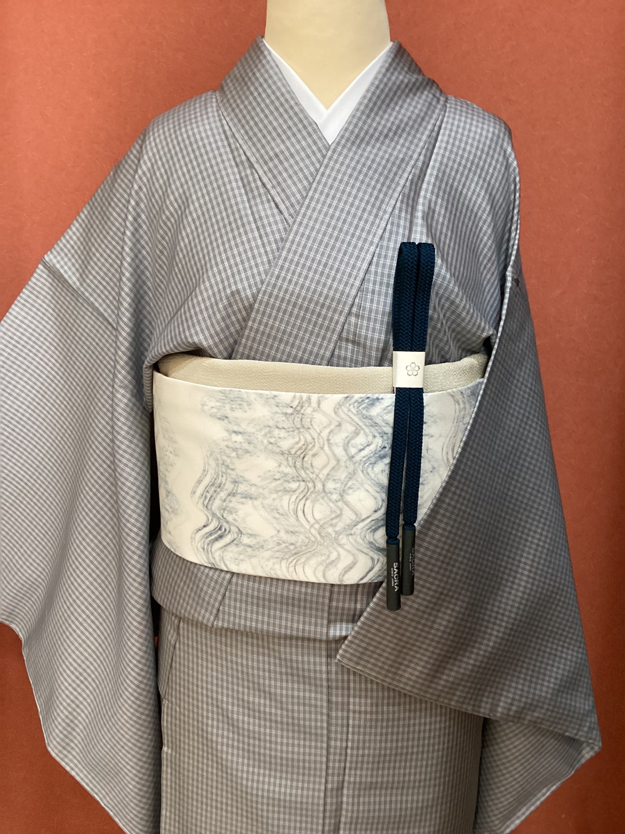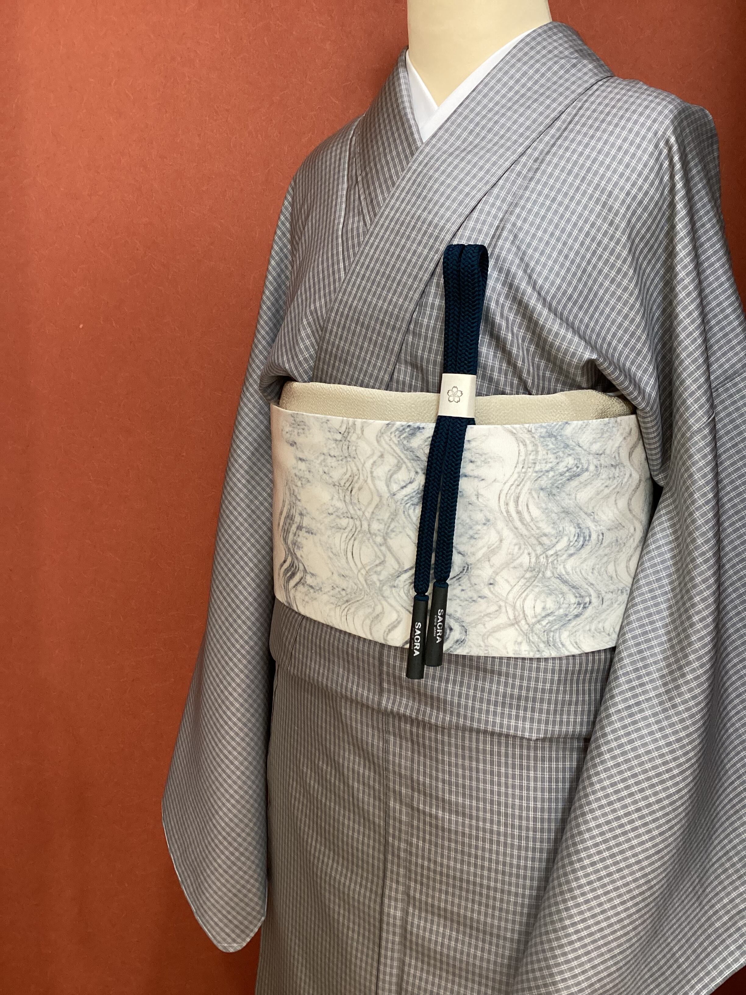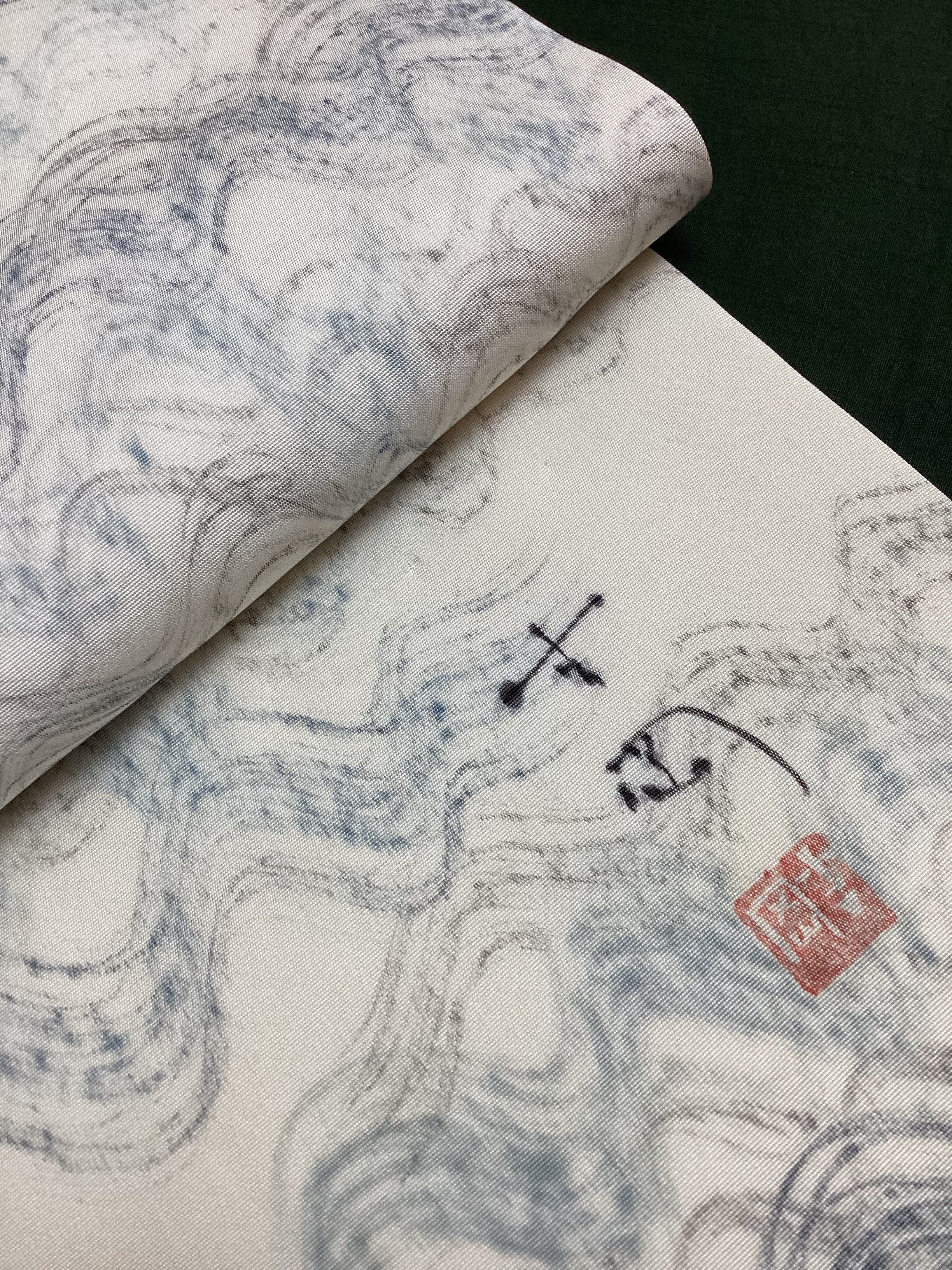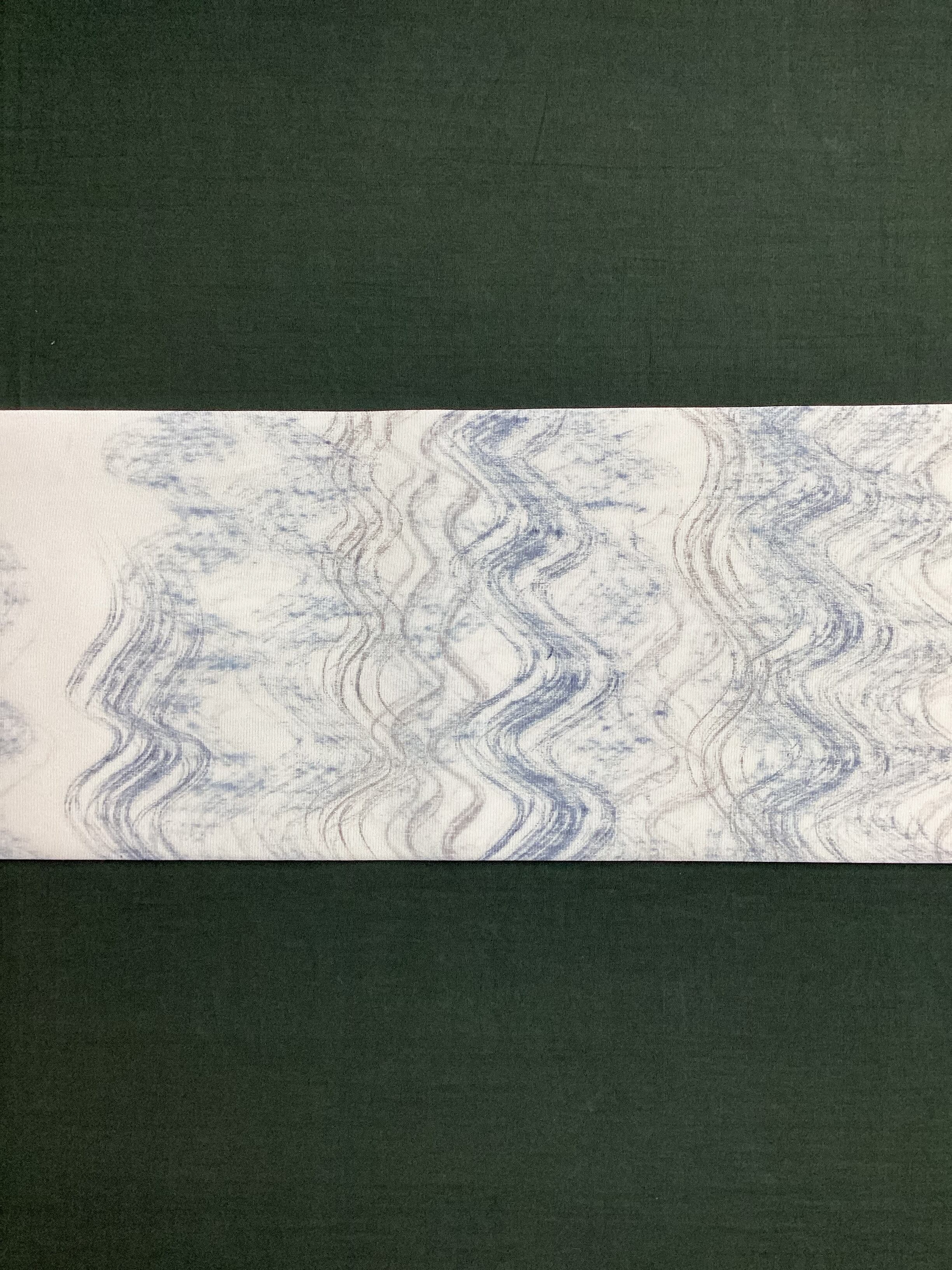 京都の老舗【染司よしおか】の味わい深い染め帯です。白の塩瀬地の上にフリーハンドで波のようにうねるラインが描かれております。かすれたり、均一ではない手描きのラインが味わい深く、面白味のある作品です。こだわりの帯をワードローブに加えてコーディネートをお楽しみください。
