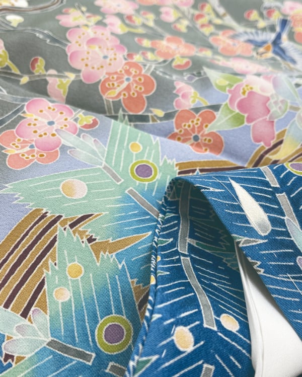 京友禅のように金糸や刺繍などは使われておりませんが、加賀五彩と呼ばれる独特の色遣いにより、気品と優雅さを感じさせる素晴らしいお品です。