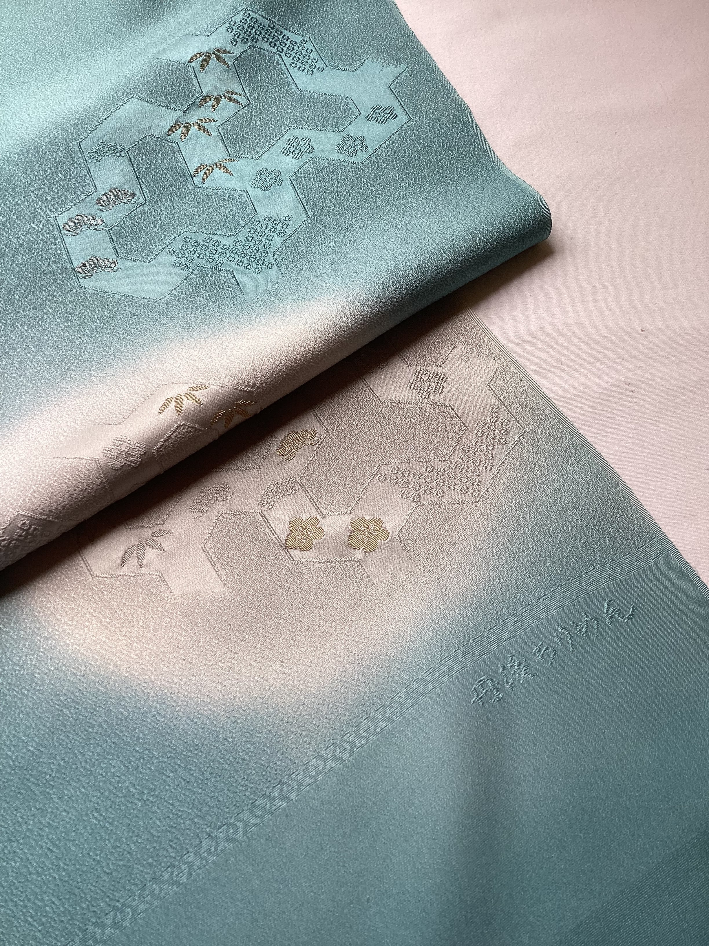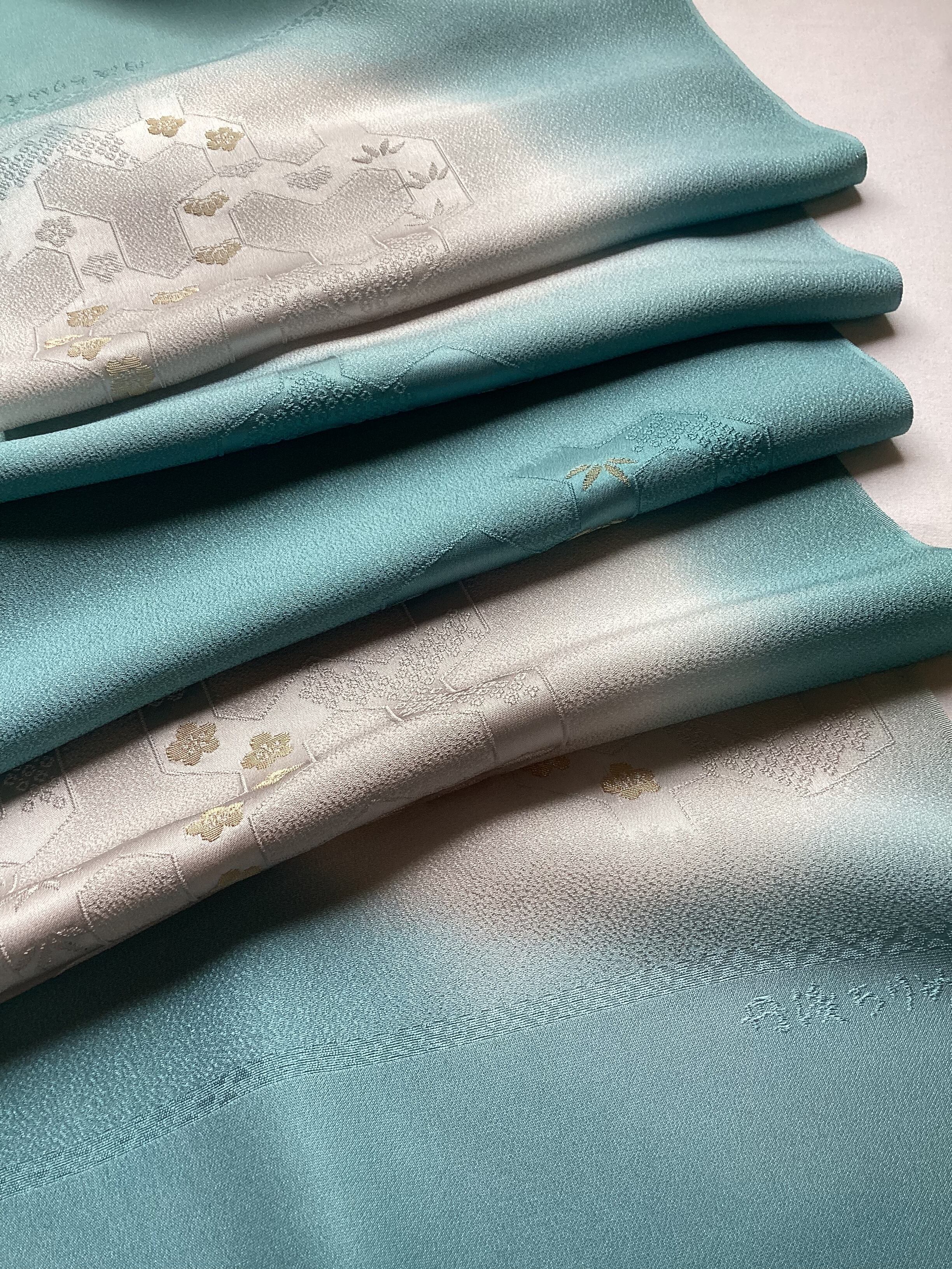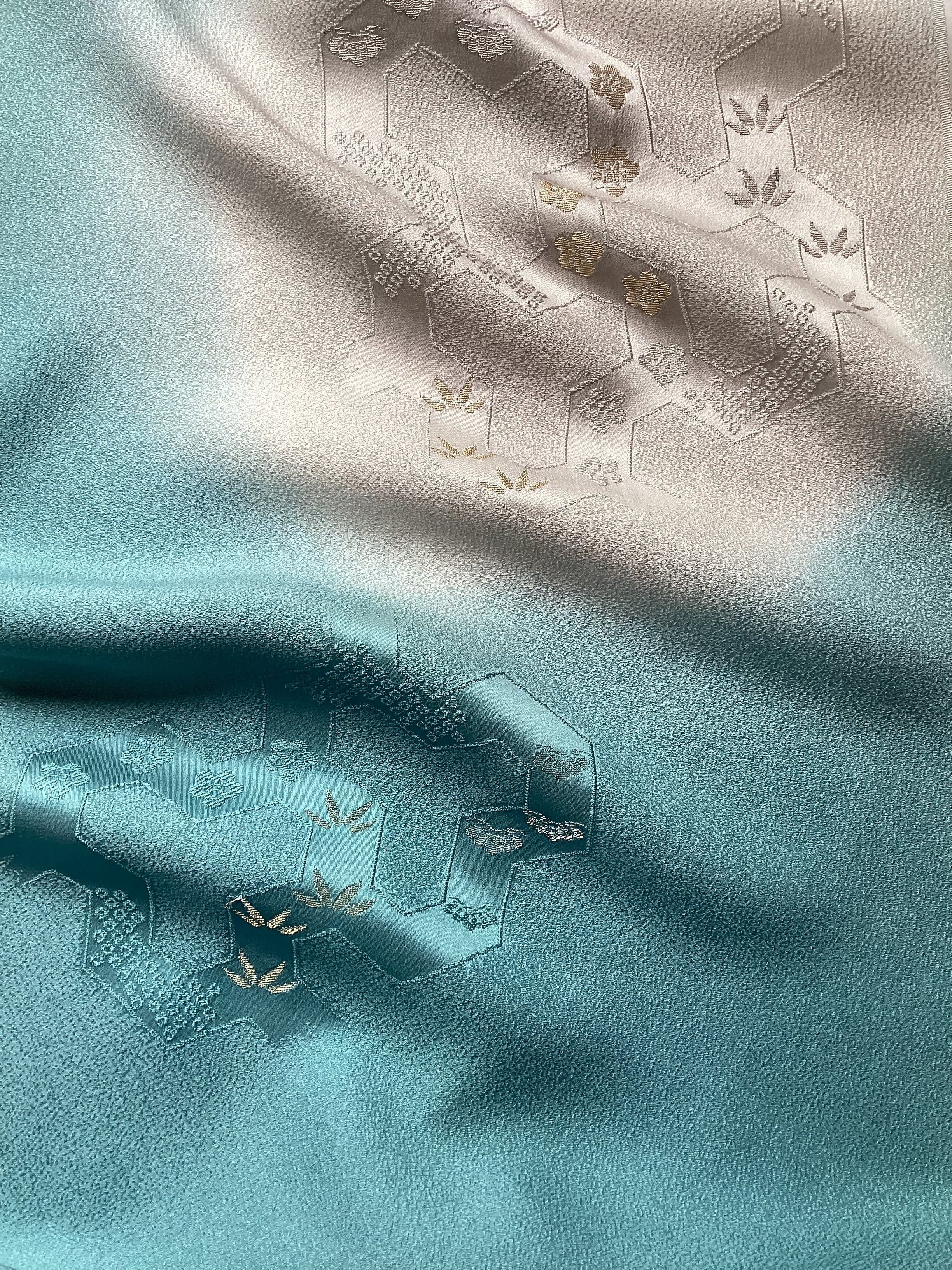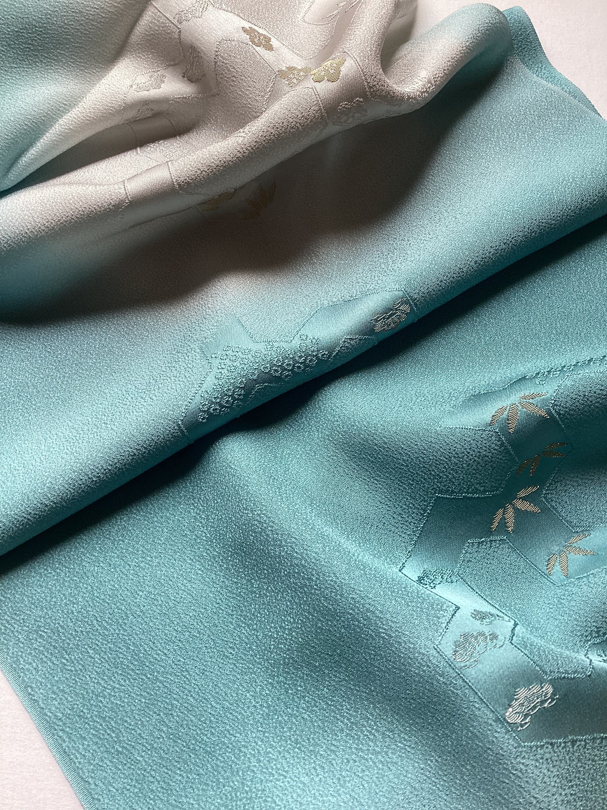 新橋色暈し地毘沙門亀甲に松竹梅文帯揚げ(新品) 260407-2