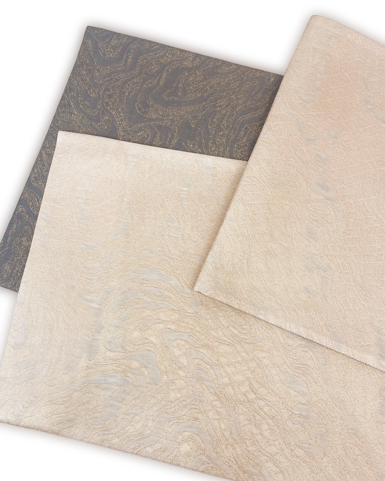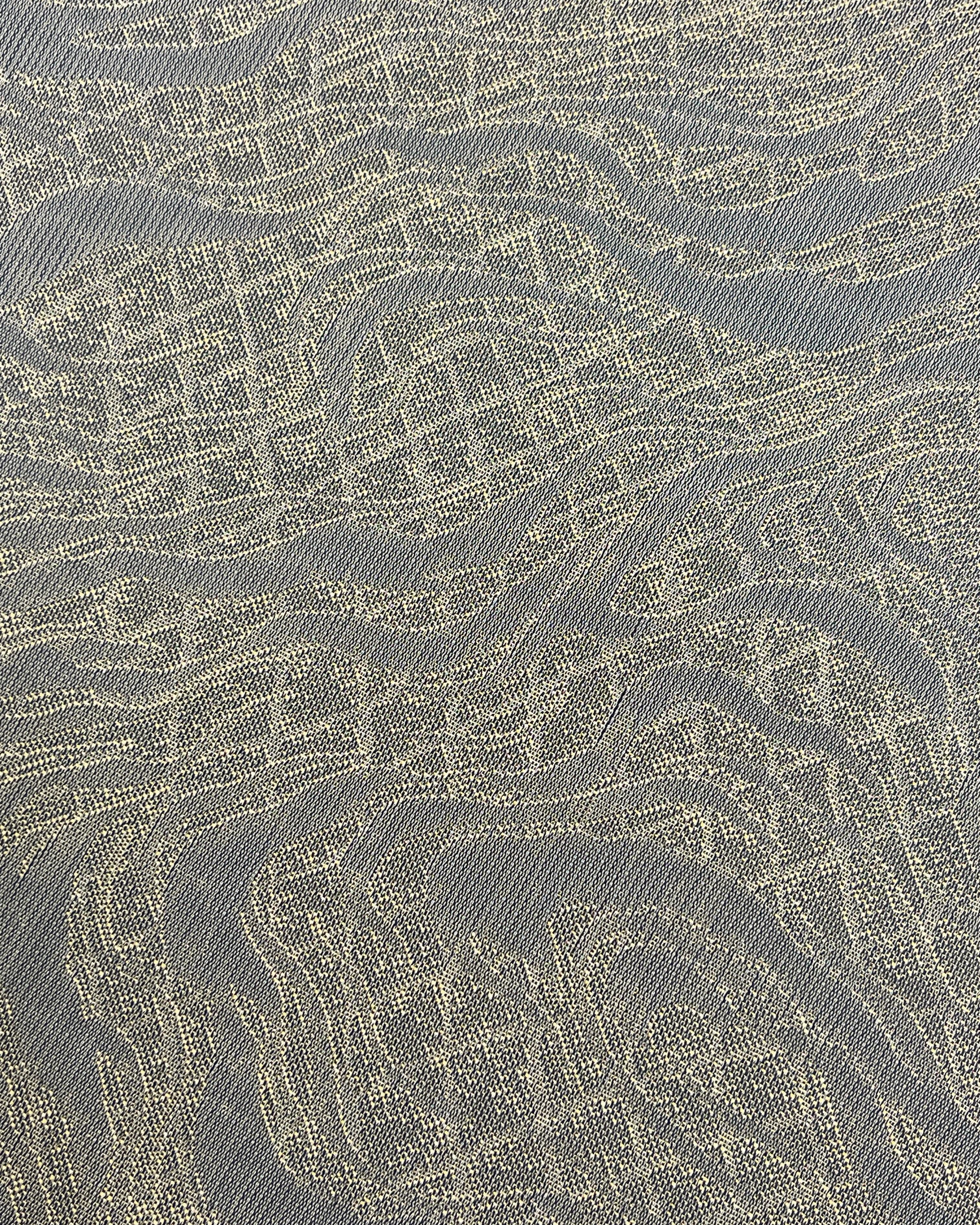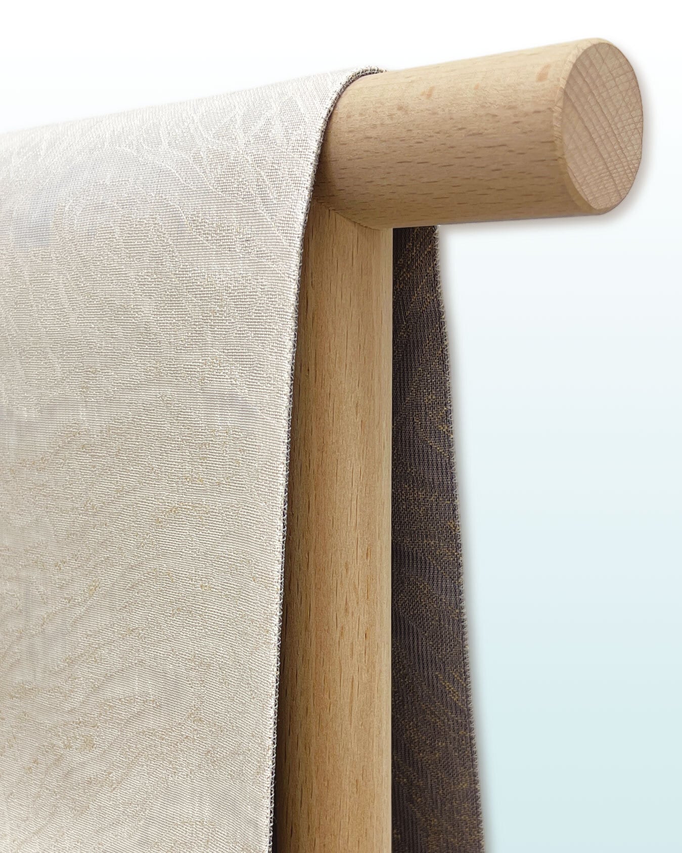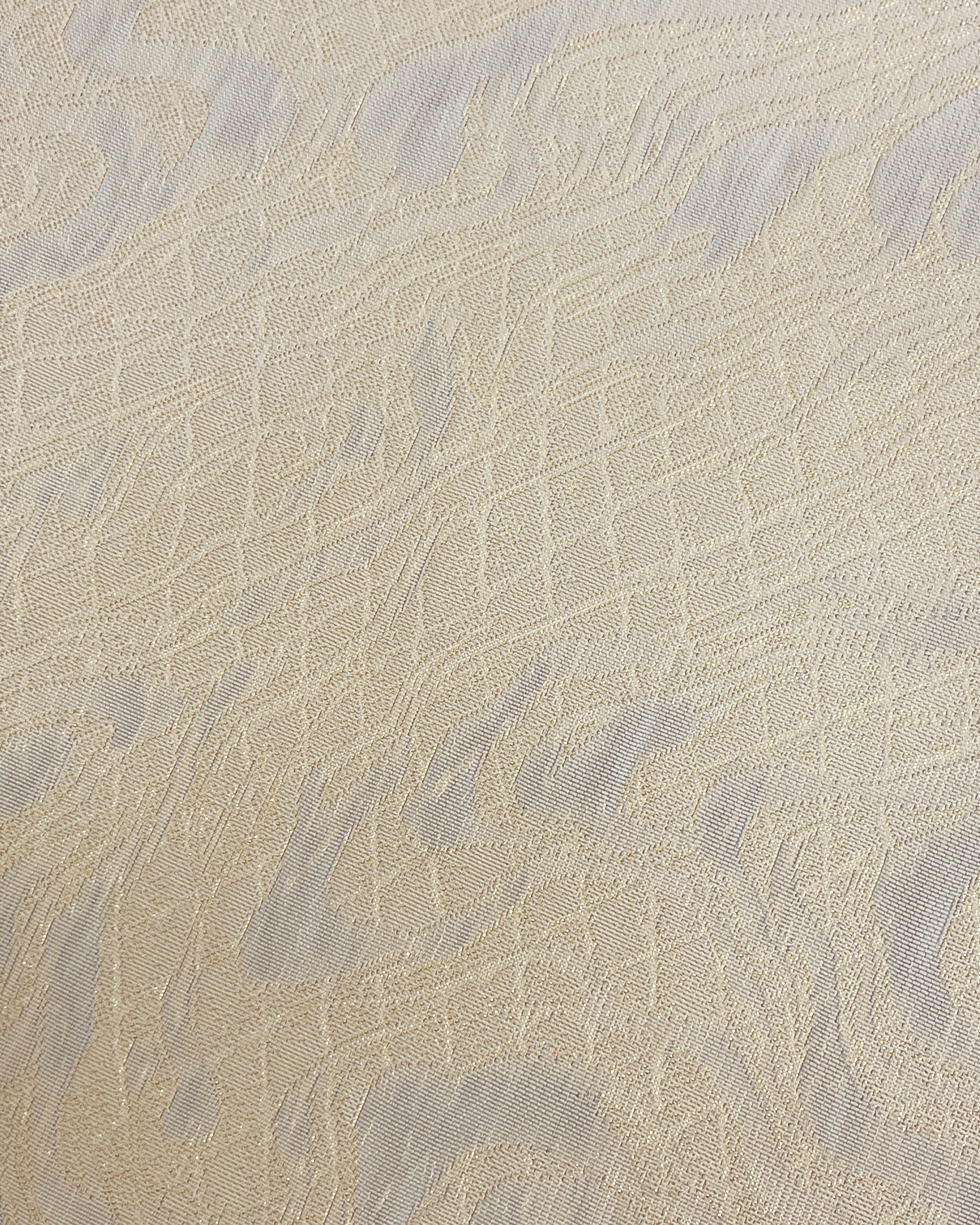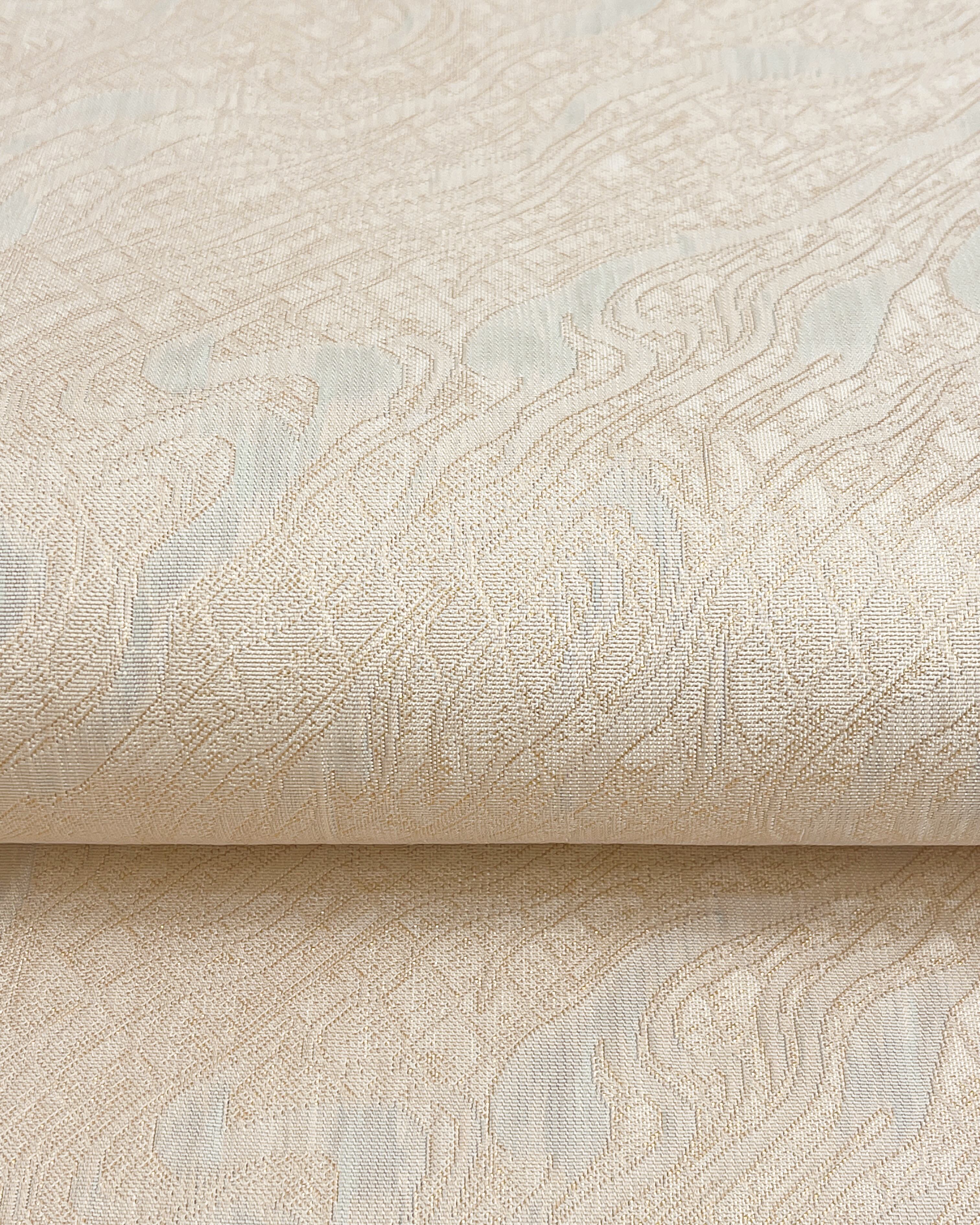 生成色とグレー地に金糸で波の柄を織り出しています。