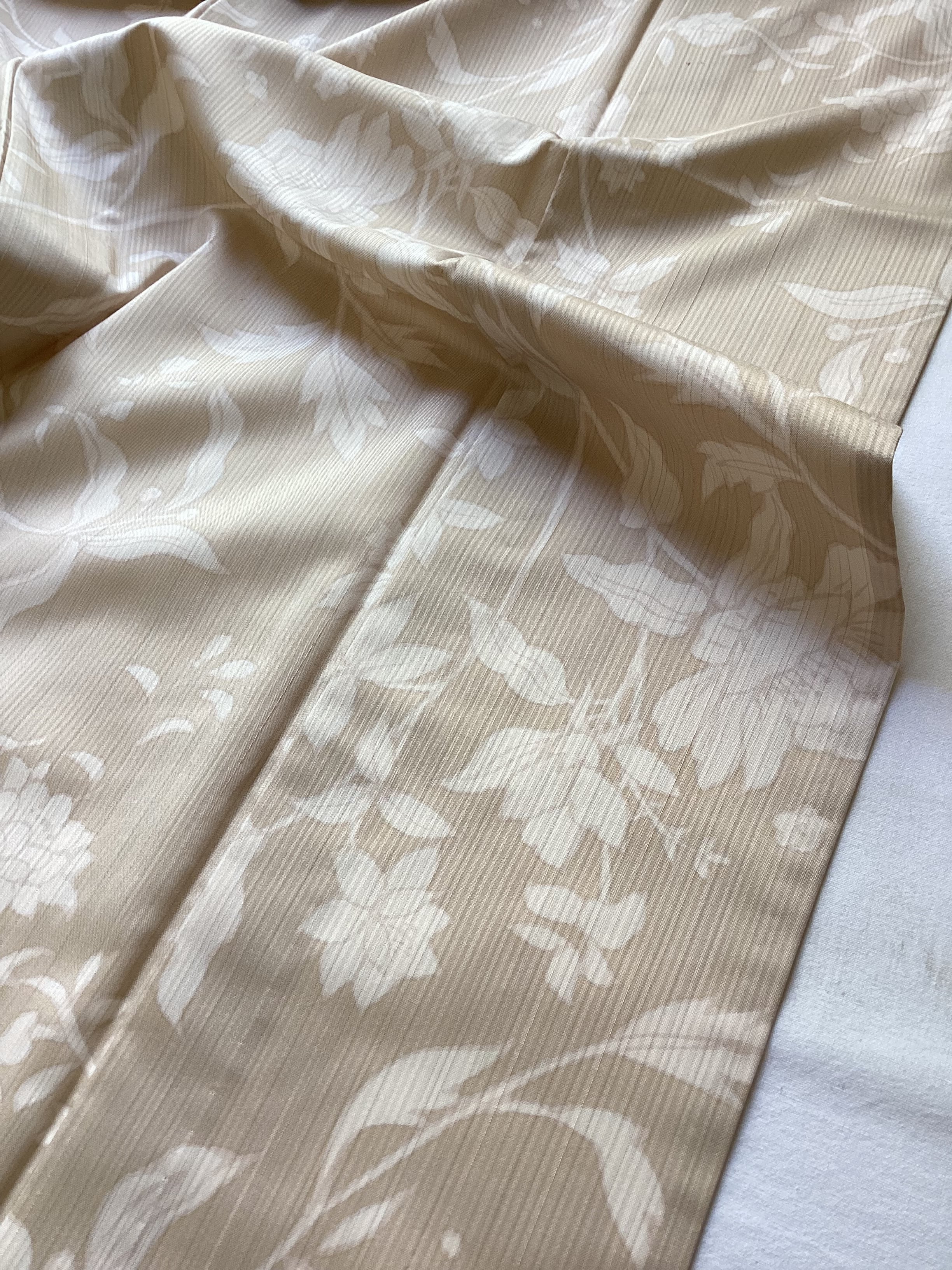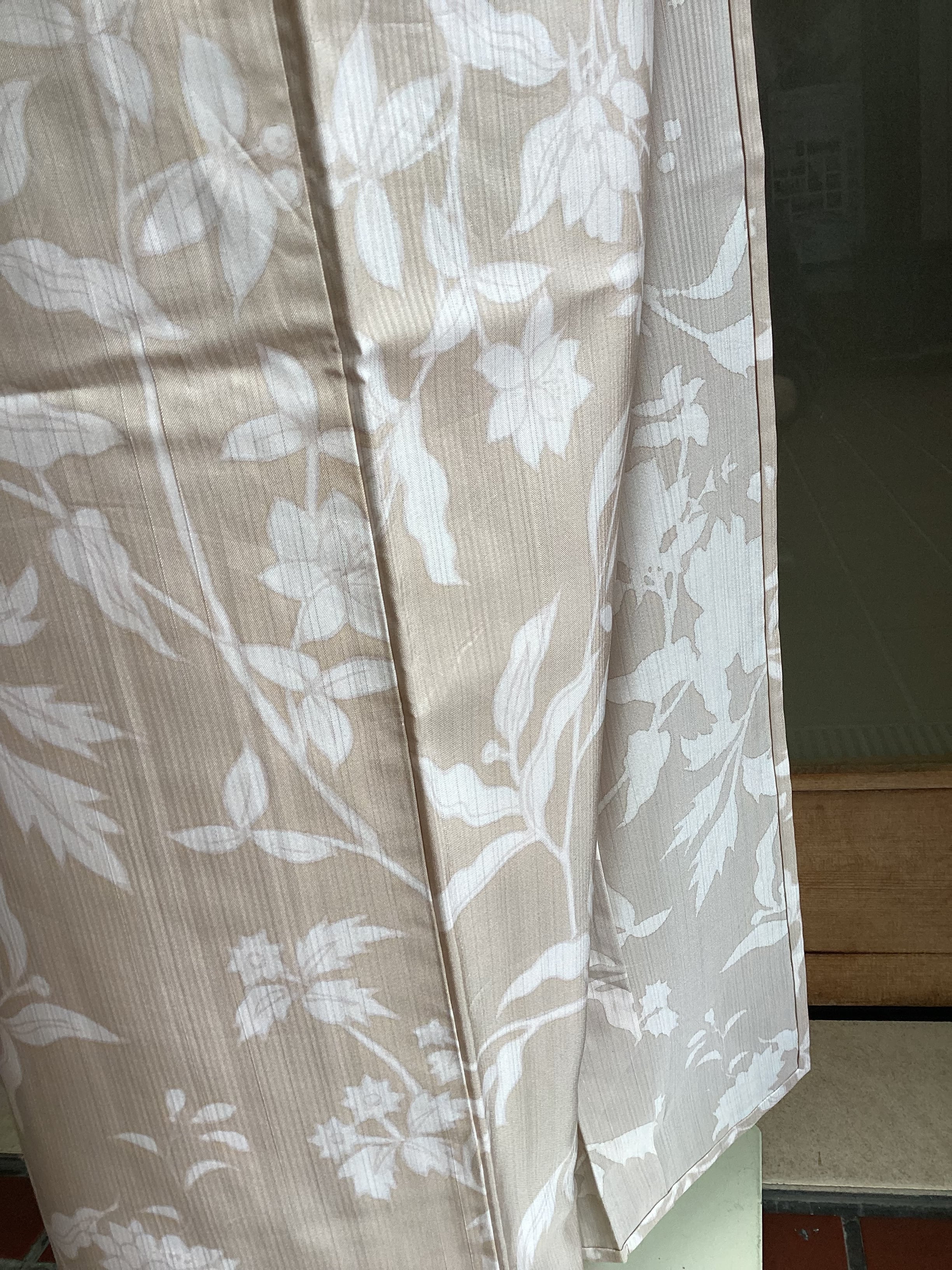 【単衣】白茶色地ボタニカル文小紋260409-1(リユース品)