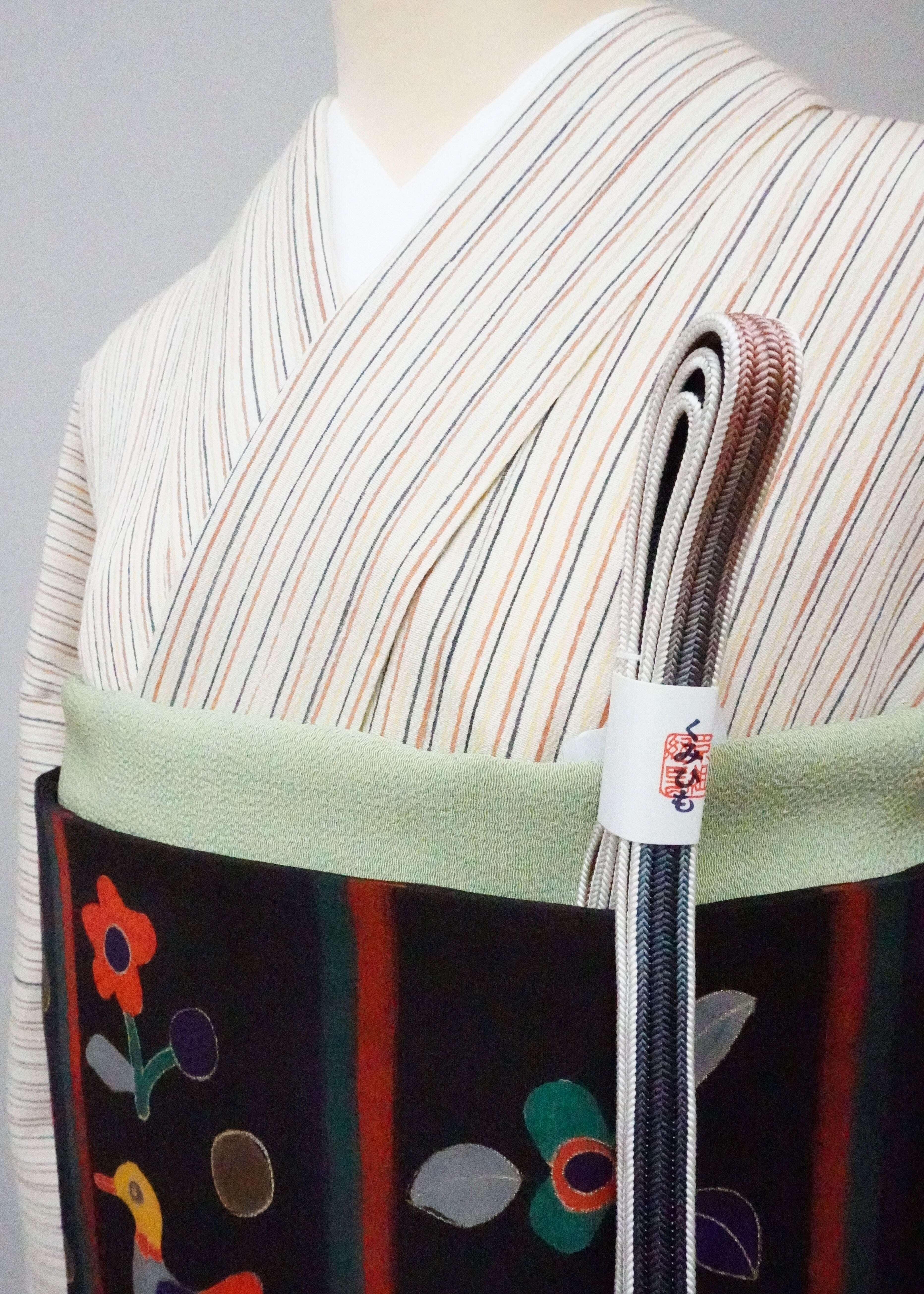 (単)染司よしおか作手引き縞ちりめん LUKMR−0017(リユース品)