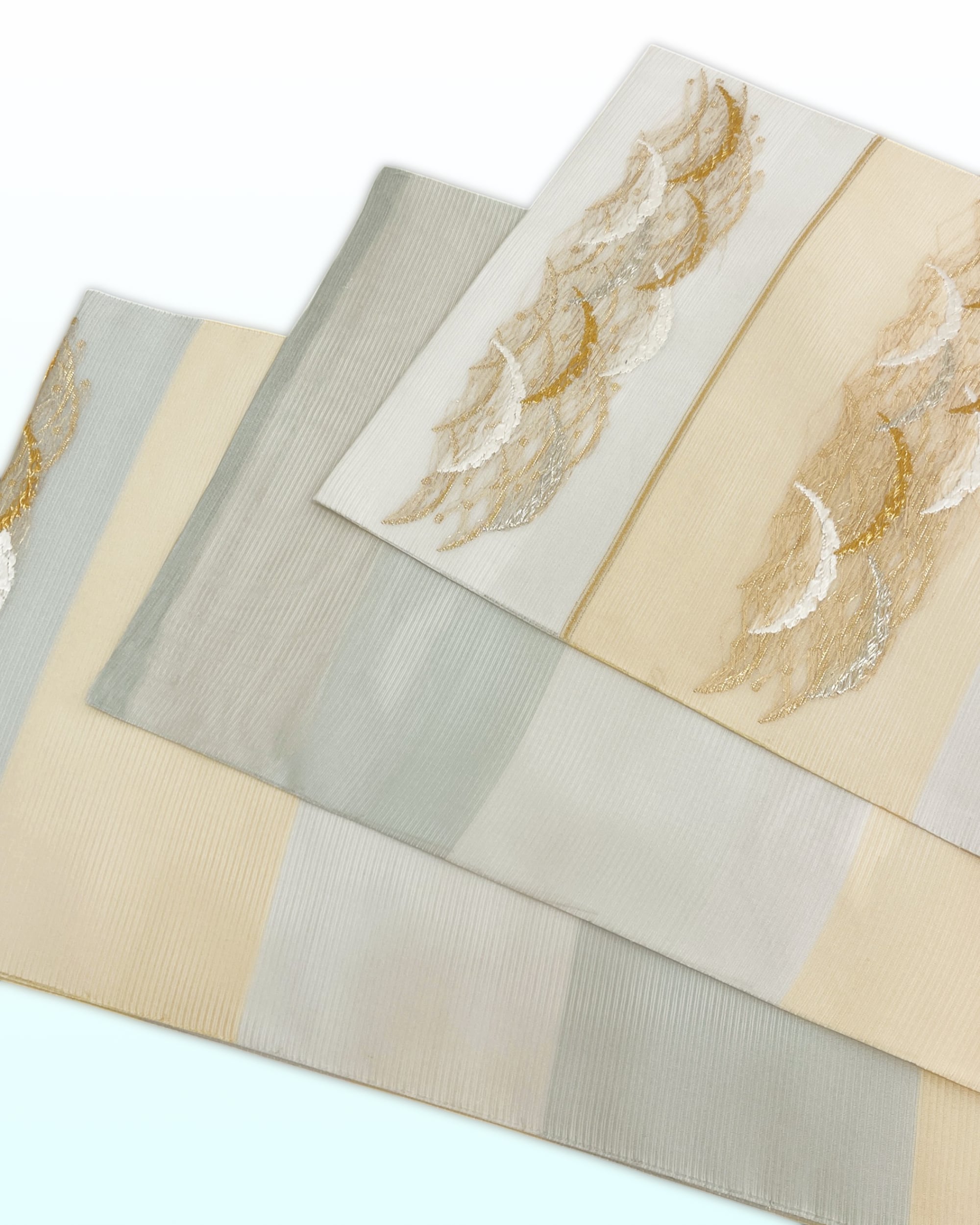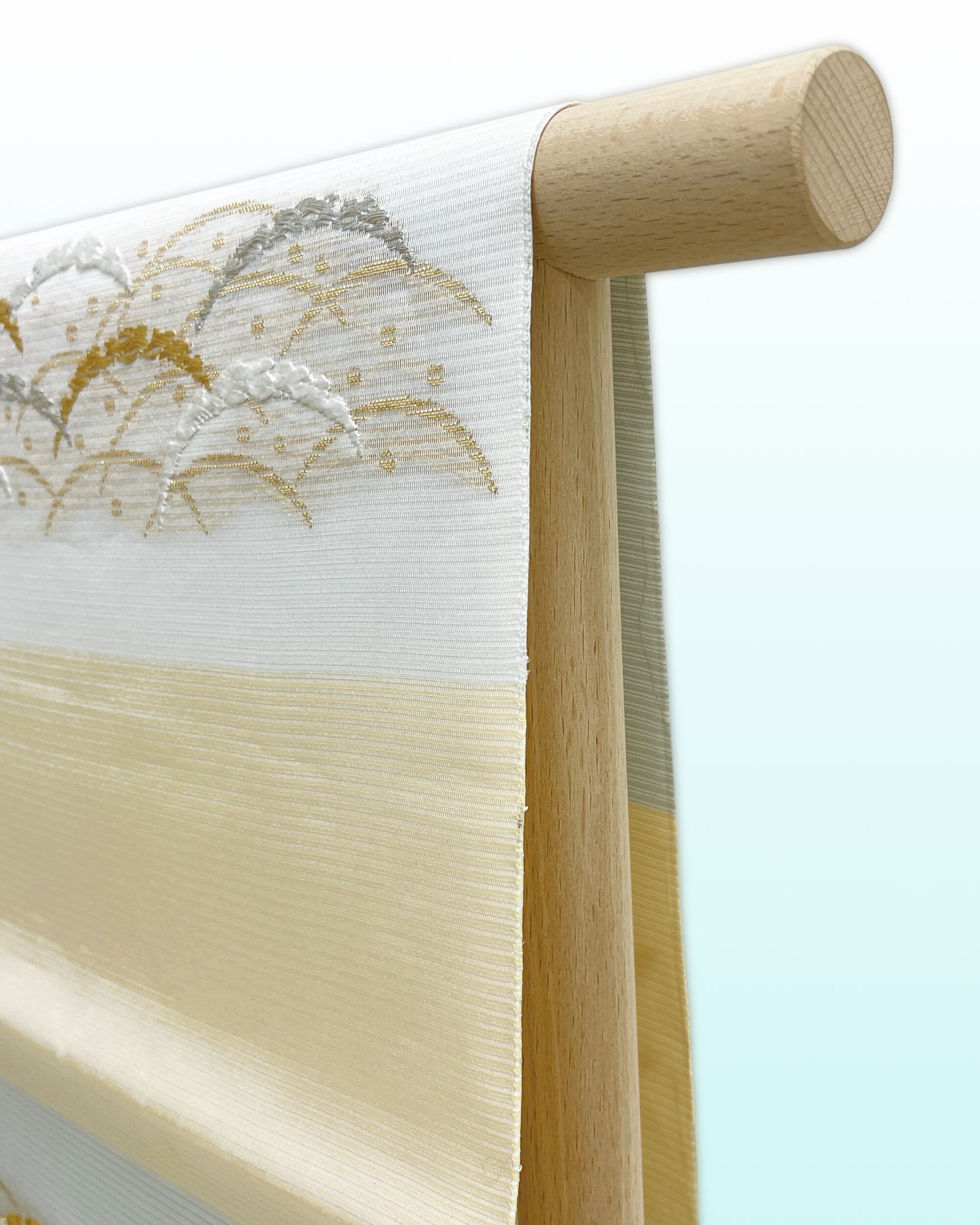 今回のお品は段に露芝文様を織り出し、涼やかなお色遣いで、清涼感を表現しています。