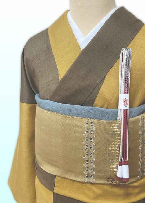 ◆帯 (名古屋)玉蜀黍色 綴れ地 琉球花織八寸 LUOGW−061(リユース品) 39,600円(税込)