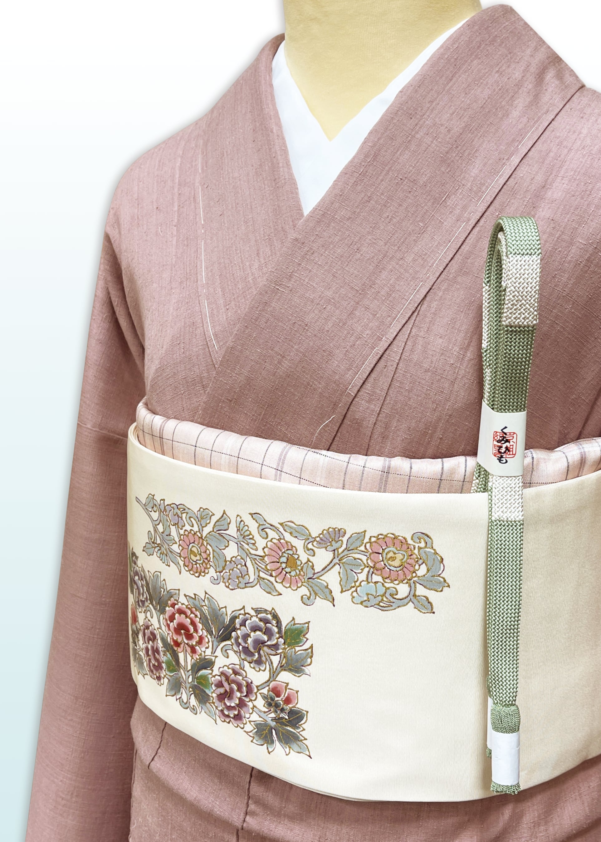 本場結城紬は全ての工程がひとの手でつくられています。証紙にある「結」のマークが本場結城紬の証であり、その品質は 織の着物の最高峰、と呼ぶにふさわしいものです。今回ご紹介するお着物は、大人のためのピンクともいえる、渋みを帯びた上品で美しい色合いが魅力です。手紡ぎ糸ならではの軽くてあたたかい、豊かな風合いを存分にお楽しみいただけます。