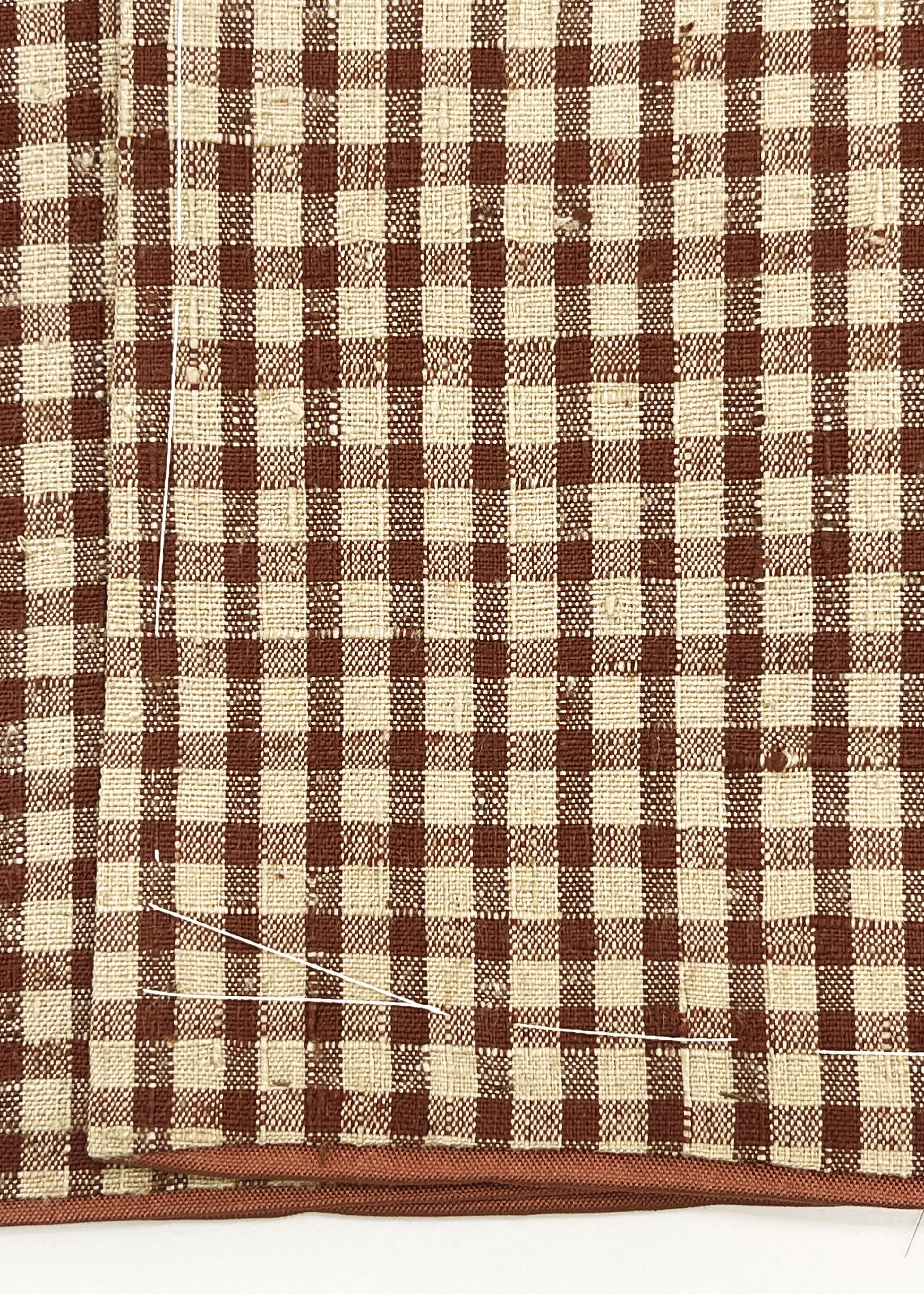 (袷)小豆色×亜麻色地小格子紬 LUKKA−049(リユース品)