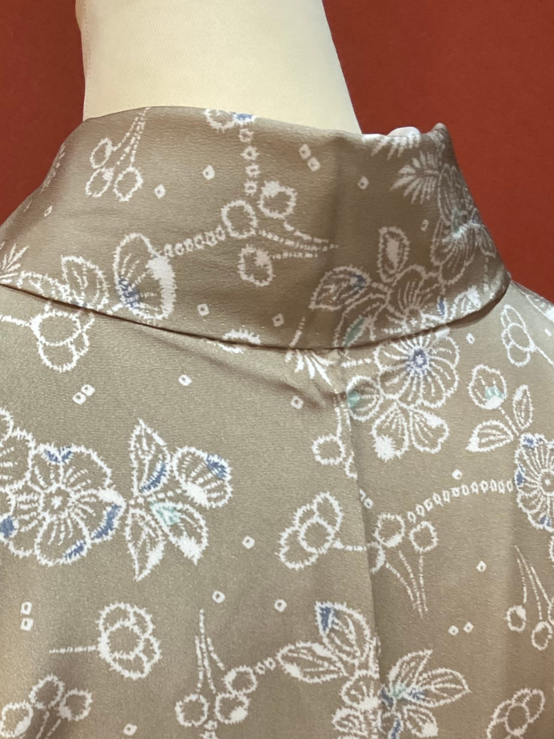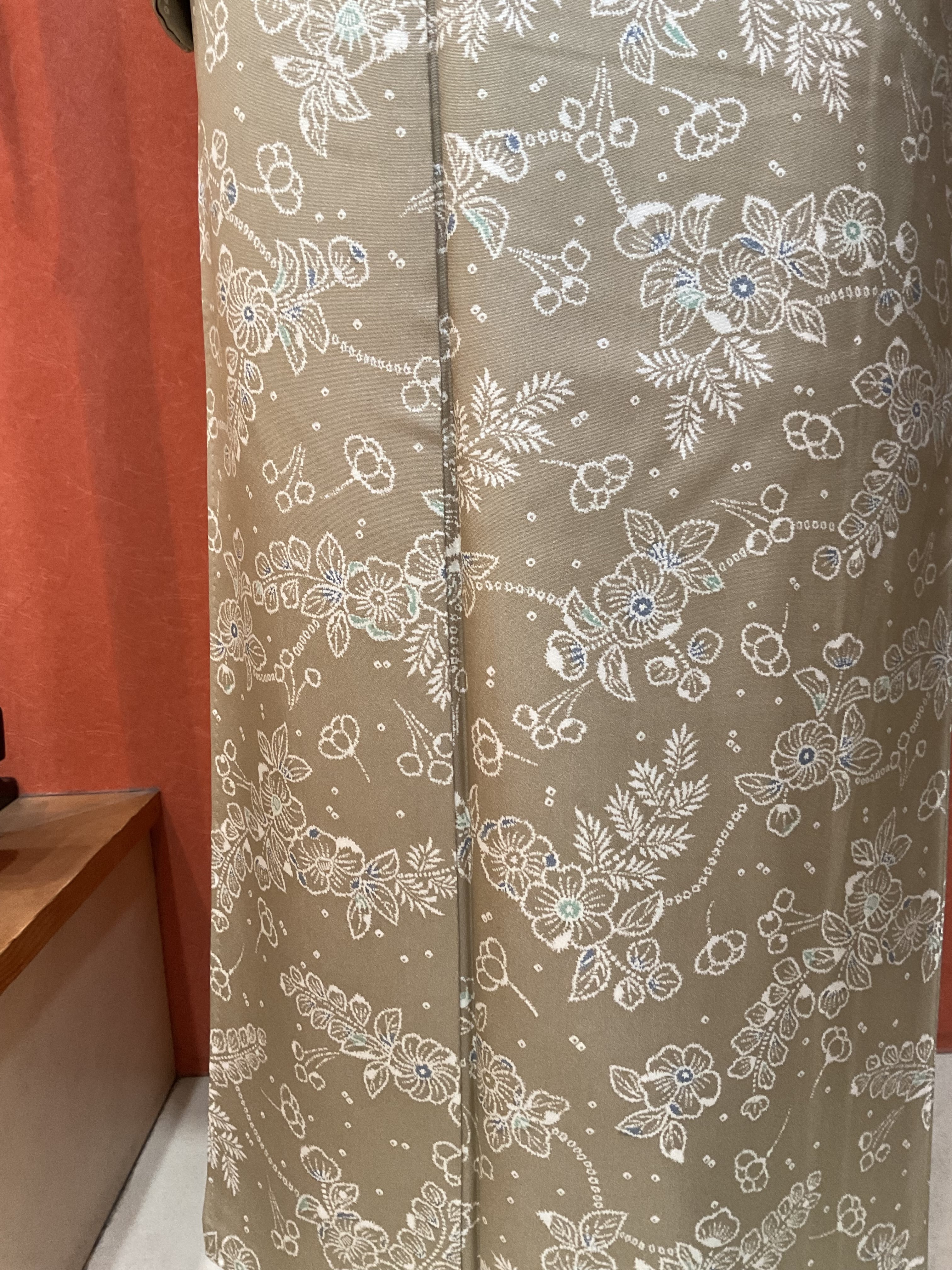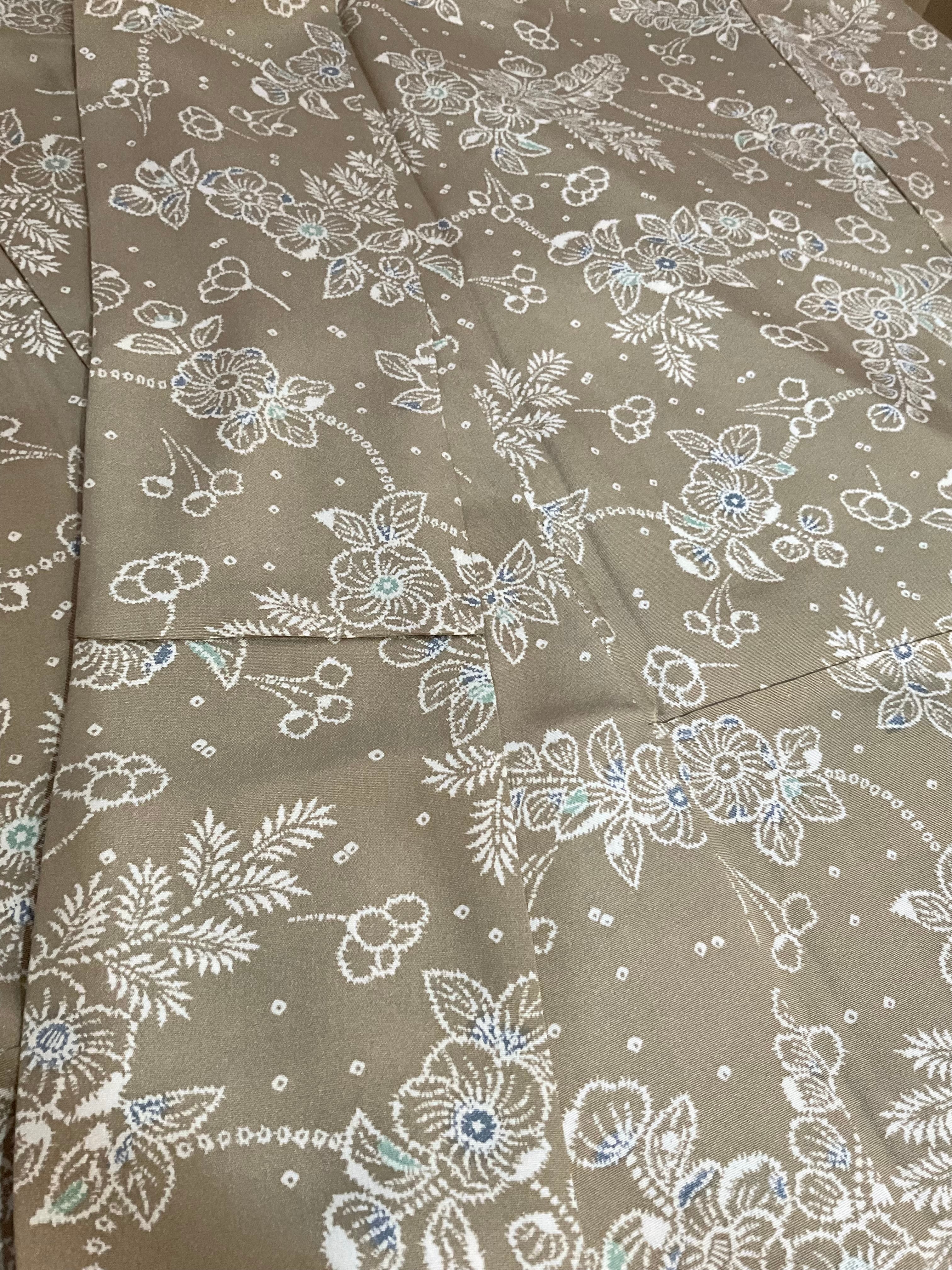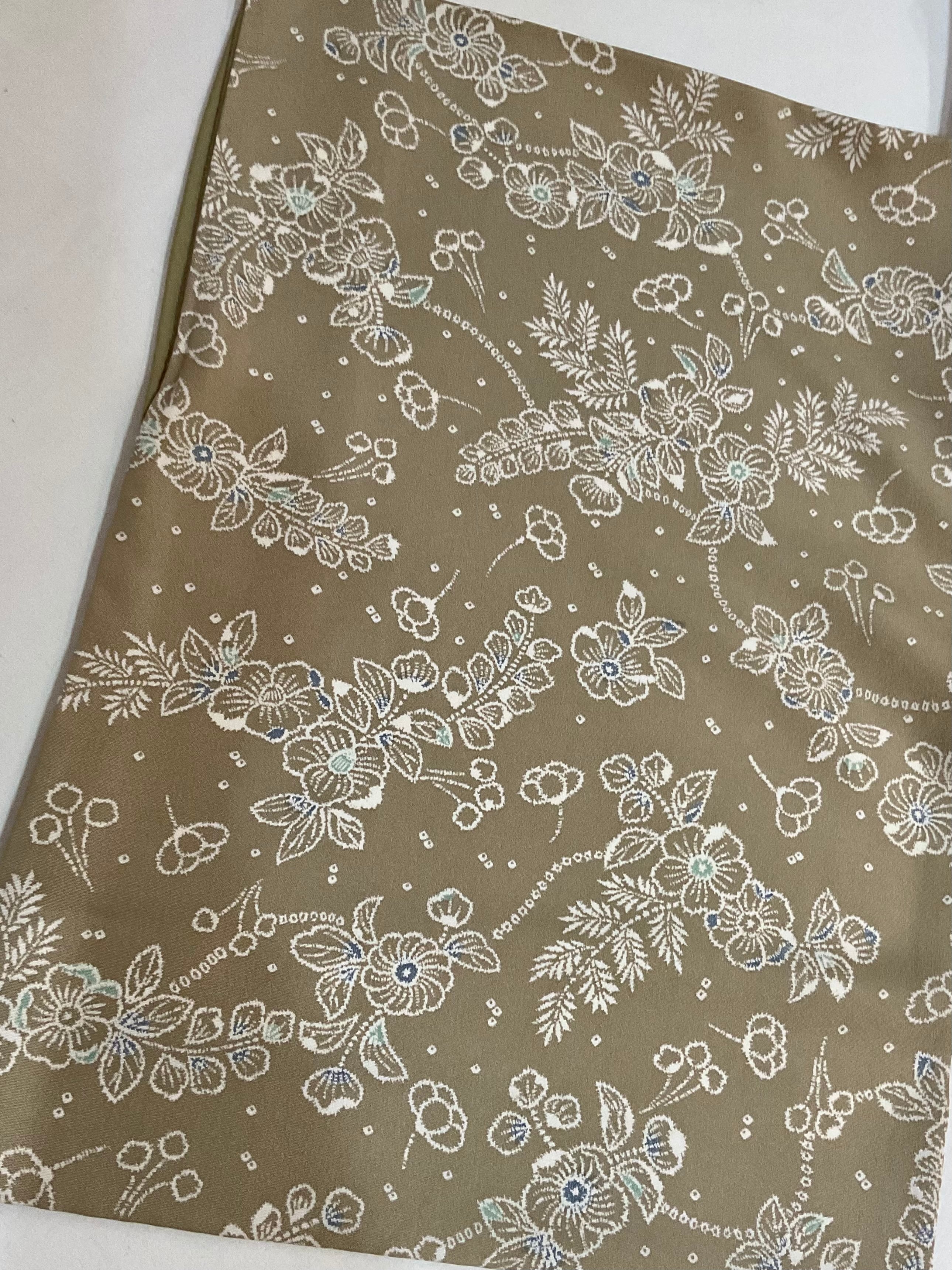 ①【袷】胡桃色地花繋ぎ文小紋(リユース品)
