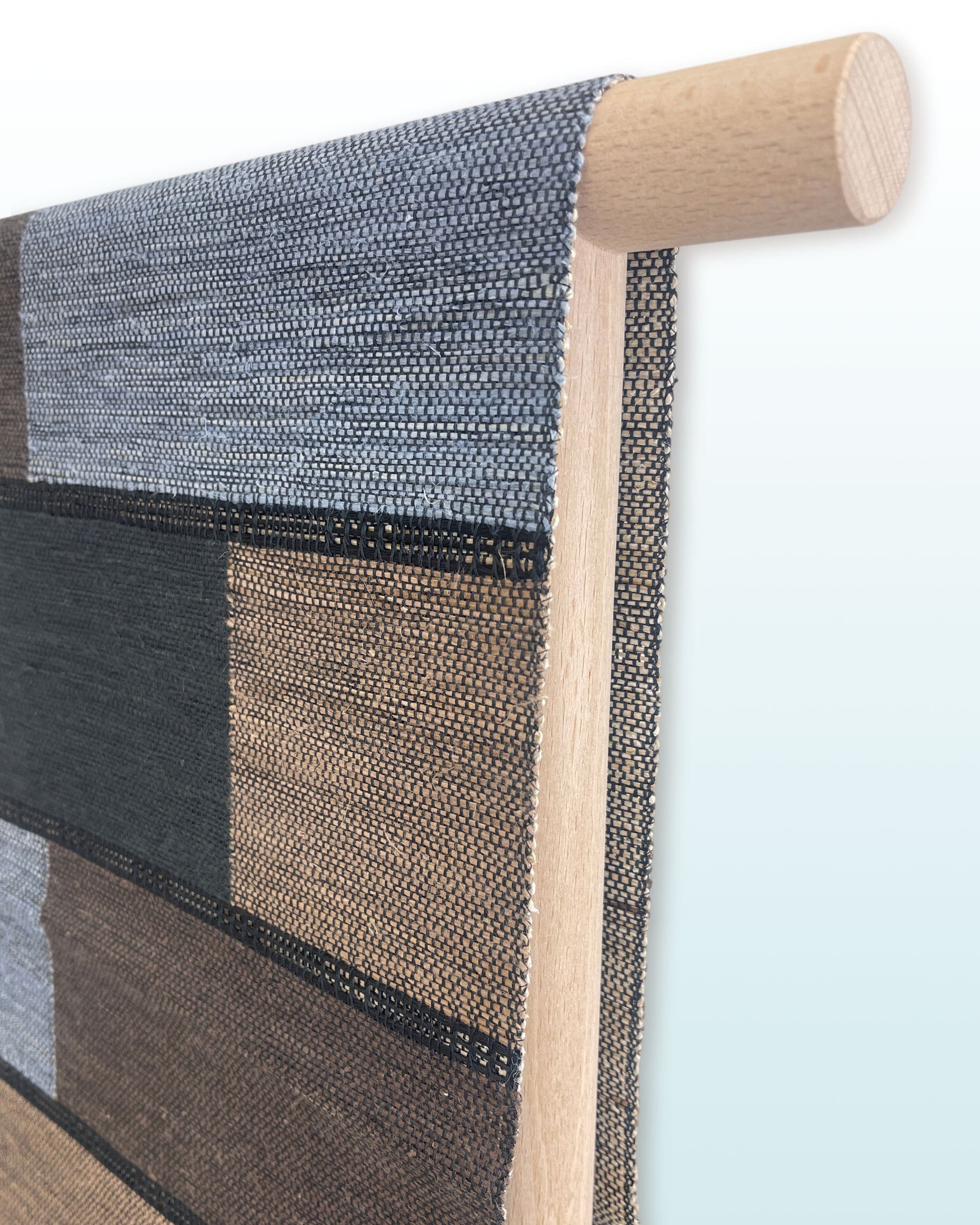 経糸に和紙を織り込んだ楮紙布は、軽やかでざっくりとした質感とリズミカルな表情を見せてくれます。