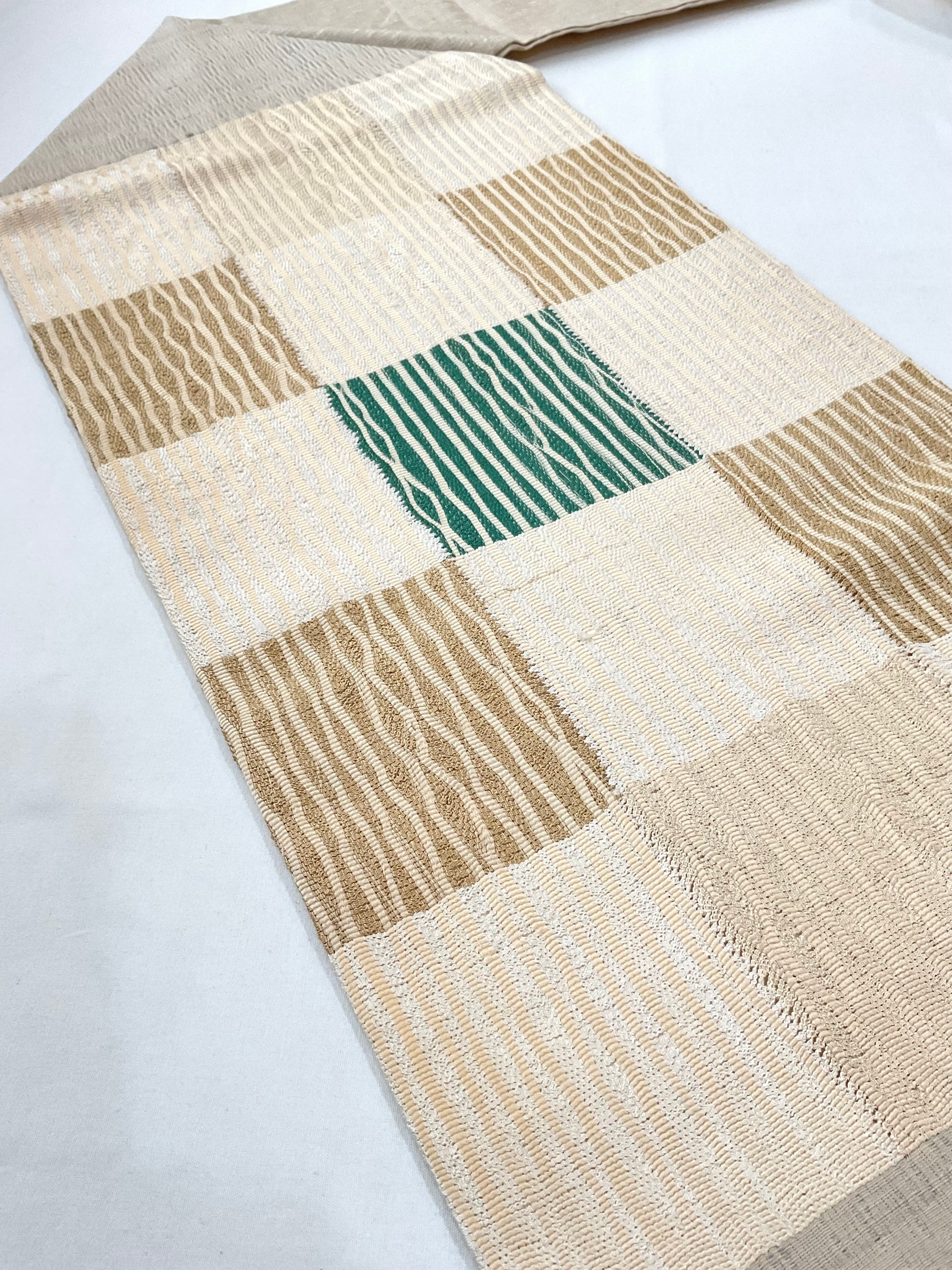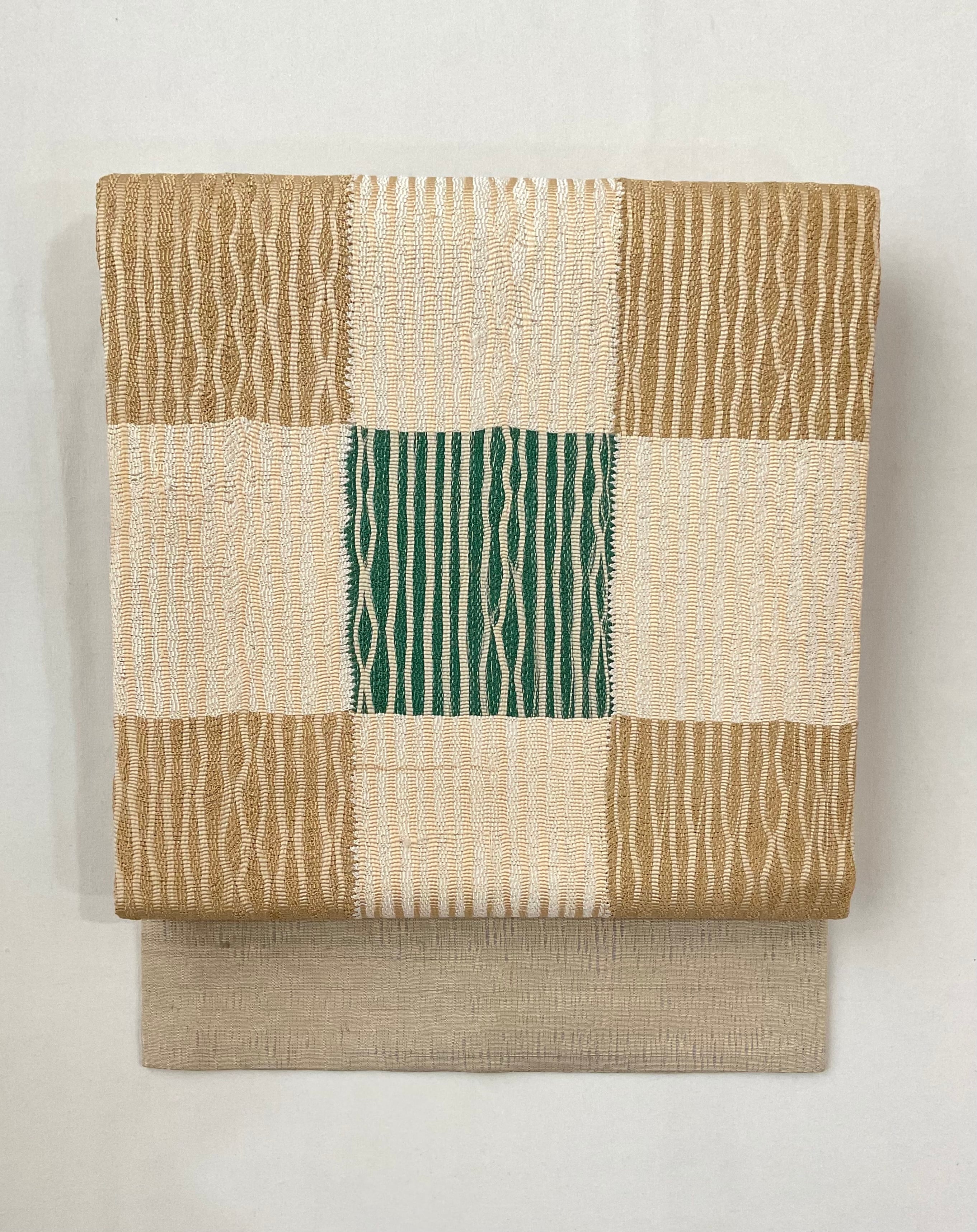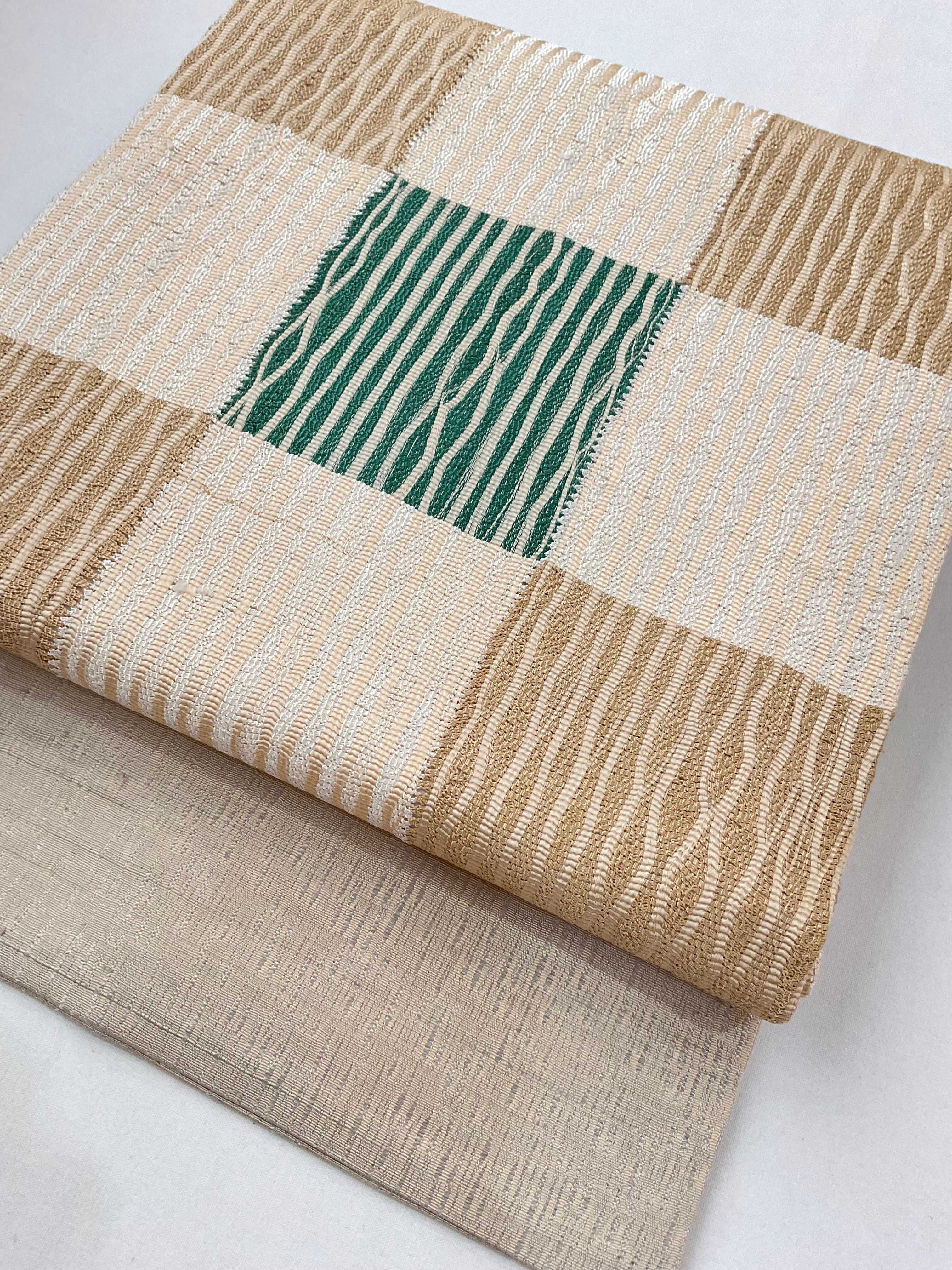 ②ベージュ地石畳文【ゑり善扱い】なごや帯(リユース品)