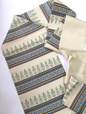星型や葉を組み合わせた可愛らしいお花と幾何学段文様との組み合わせが楽しい意匠です。