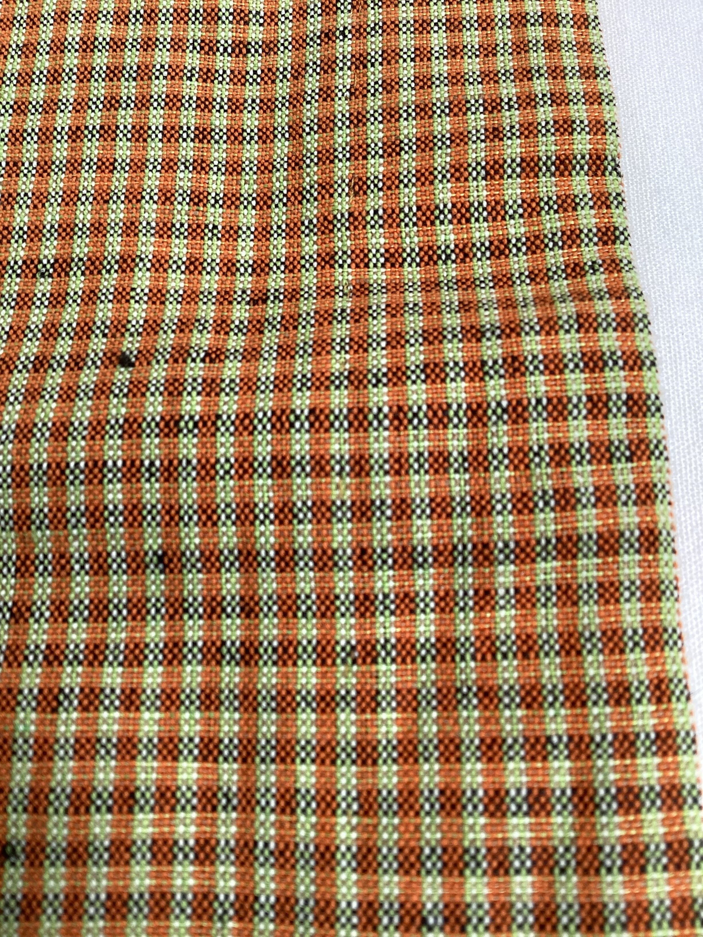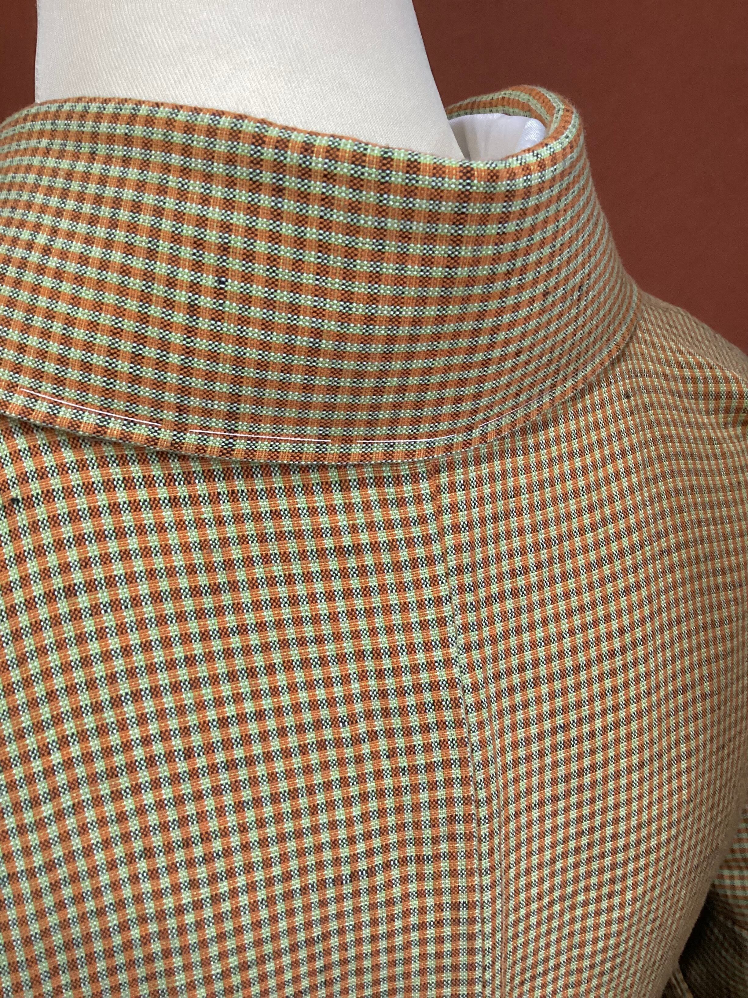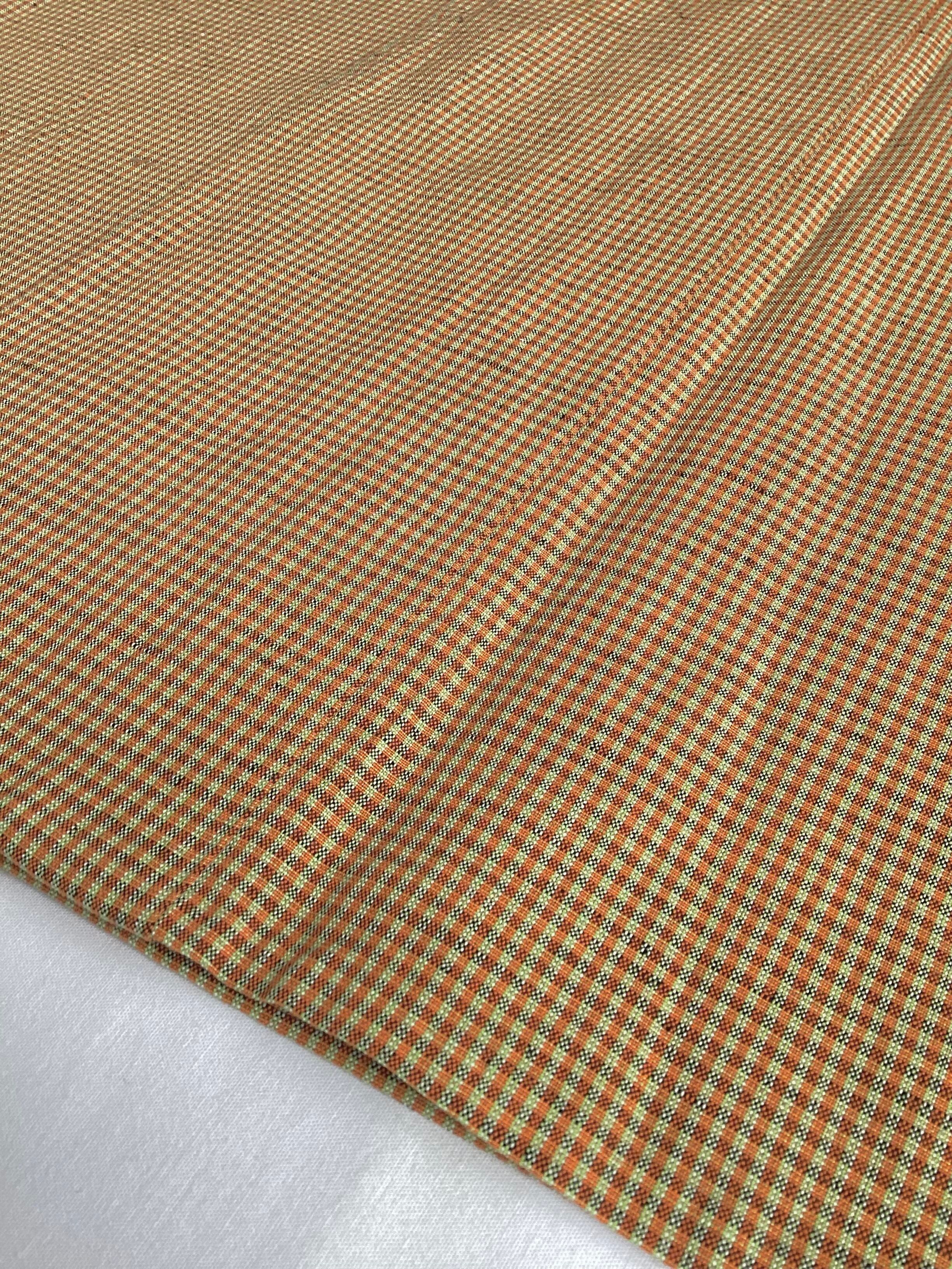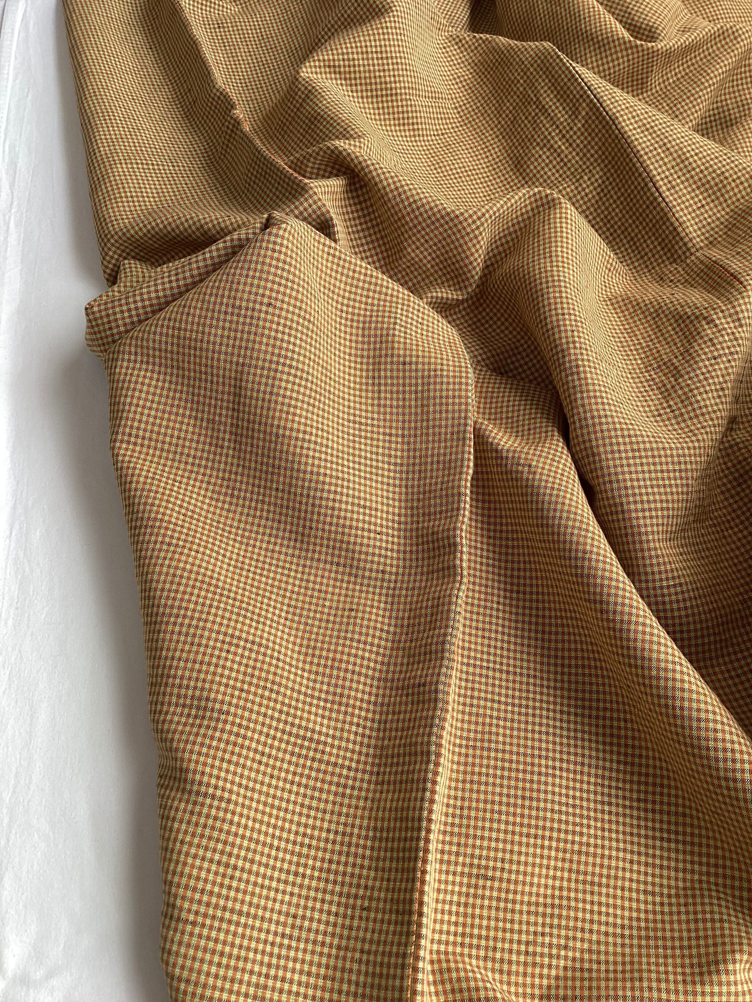 黄茶色微塵格子文綿麻きもの(新品お仕立て上がり)260312-1